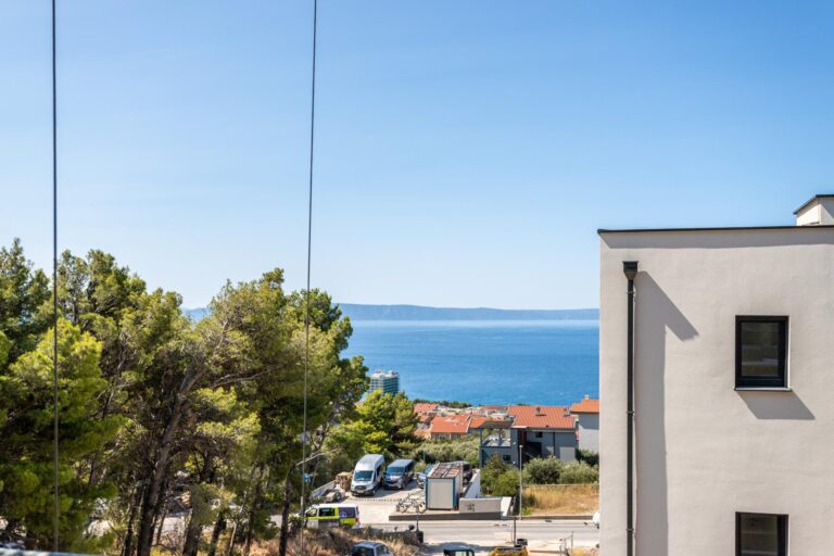 Apartament z balkonem i widokiem na morze w sercu Makarskiej Przestronny apartament o powierzchni ponad 60 m² znajduje się na trzecim piętrze nowoczesnego budynku w Makarskiej....