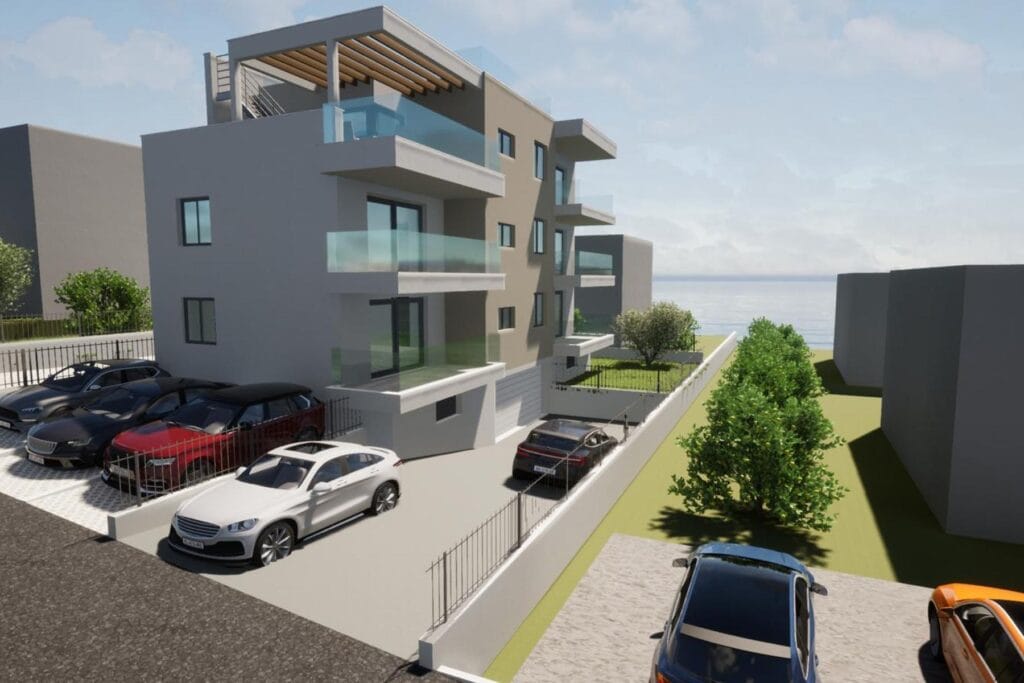 Wyjątkowe mieszkanie z widokiem na morze w Okrugu W bezpośrednim sąsiedztwie zabytkowego miasta Trogir powstaje nowoczesny budynek mieszkalny składający się z trzech apartamentów. Położony na zachodniej...