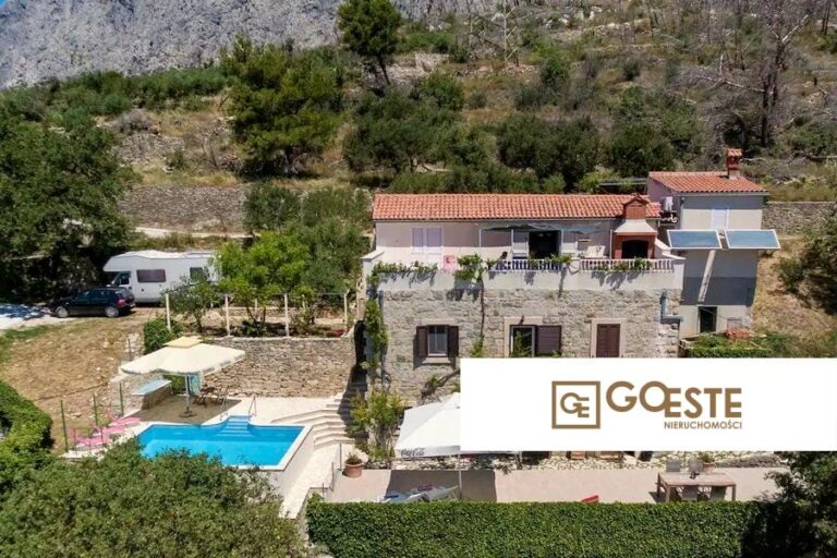 Elegancki dom z basenem w spokojnej okolicy Splitu Na sprzedaż nieruchomość w Chorwacji, która stanowi doskonałą okazję dla osób poszukujących komfortowego miejsca do życia lub inwestycji....