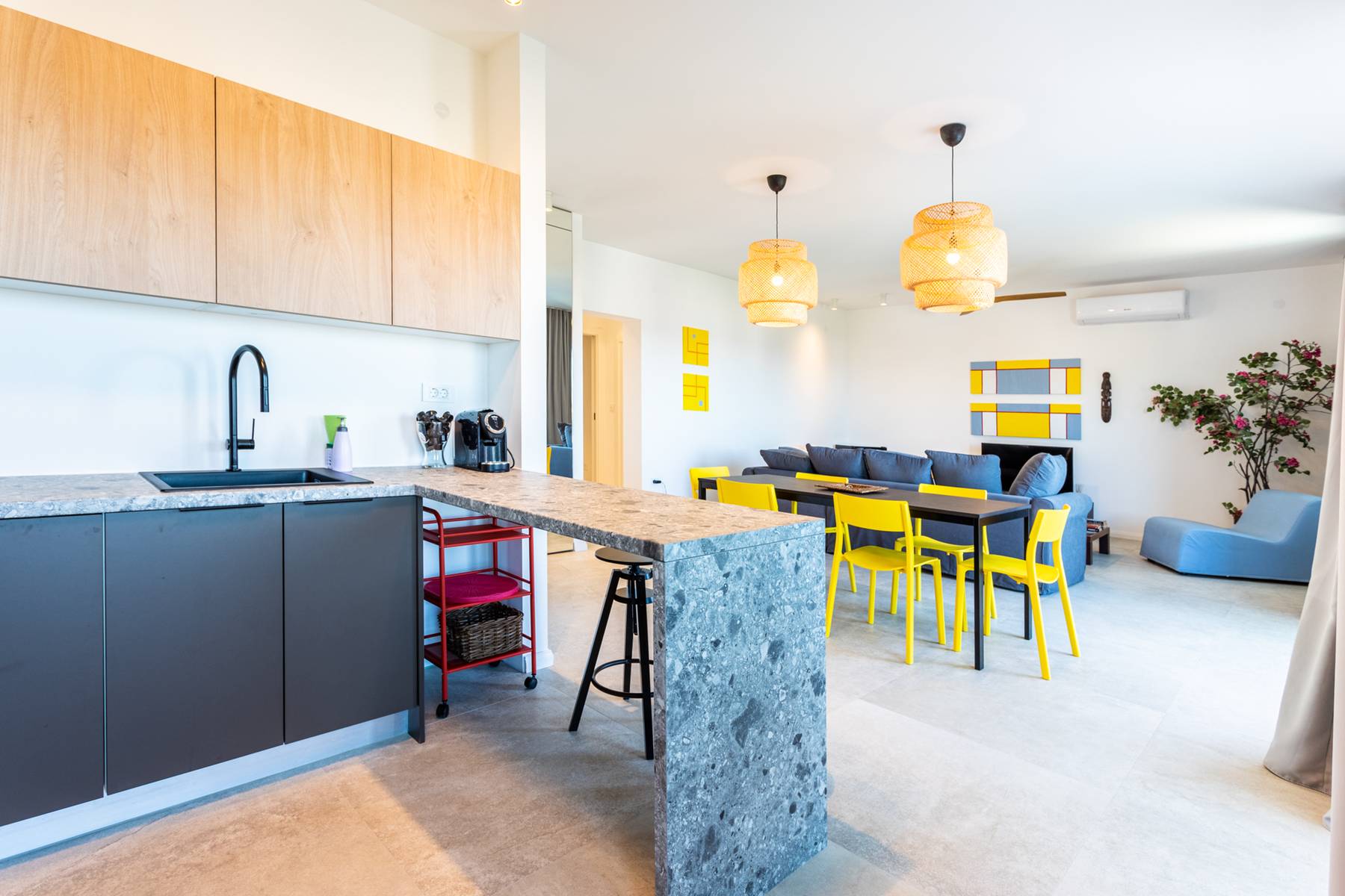Prezentowane mieszkanie stanowi wyjątkową propozycję dla osób poszukujących wygodnego miejsca na wypoczynek nad Adriatykiem lub inwestycji w atrakcyjnej lokalizacji. Lokal usytuowany jest na pierwszym piętrze budynku mieszkalnego, co gwarantuje ciszę i spokój, a jednocześnie pozwala korzystać z pięknych widoków na morze. Wnętrze jest urządzone w nowoczesnym stylu, co podkreśla funkcjonalność i estetykę całej przestrzeni.