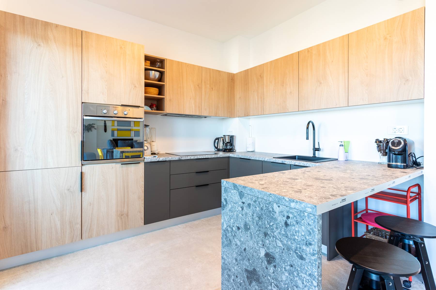 Wysokiej jakości meble i wyposażenie podnoszą komfort użytkowania. Podłogi oraz wykończenie ścian zostały wykonane z materiałów łatwych do utrzymania w czystości. Duże okna pozwalają na znakomite doświetlenie wnętrz i oferują zapierające dech widoki na morze. Stan techniczny mieszkania jest bez zarzutu, a jego gotowość do zamieszkania eliminuje konieczność kosztownych remontów. Przestronny, półzadaszony taras stanowi dodatkową przestrzeń do relaksu na świeżym powietrzu.
