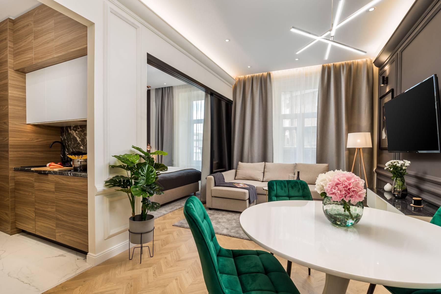 Trzy osobne apartamenty mieszczą wszystko, co jest potrzebne do komfortowego życia lub prowadzenia działalności najmu. Budynek jest zadbany, z wygodnym dostępem do klatki schodowej. Remont obejmował nie tylko wymianę instalacji, ale także nowoczesne wykończenia powierzchni. Wysoka jakość materiałów i dbałość o detale tworzą przyjazną i luksusową atmosferę.