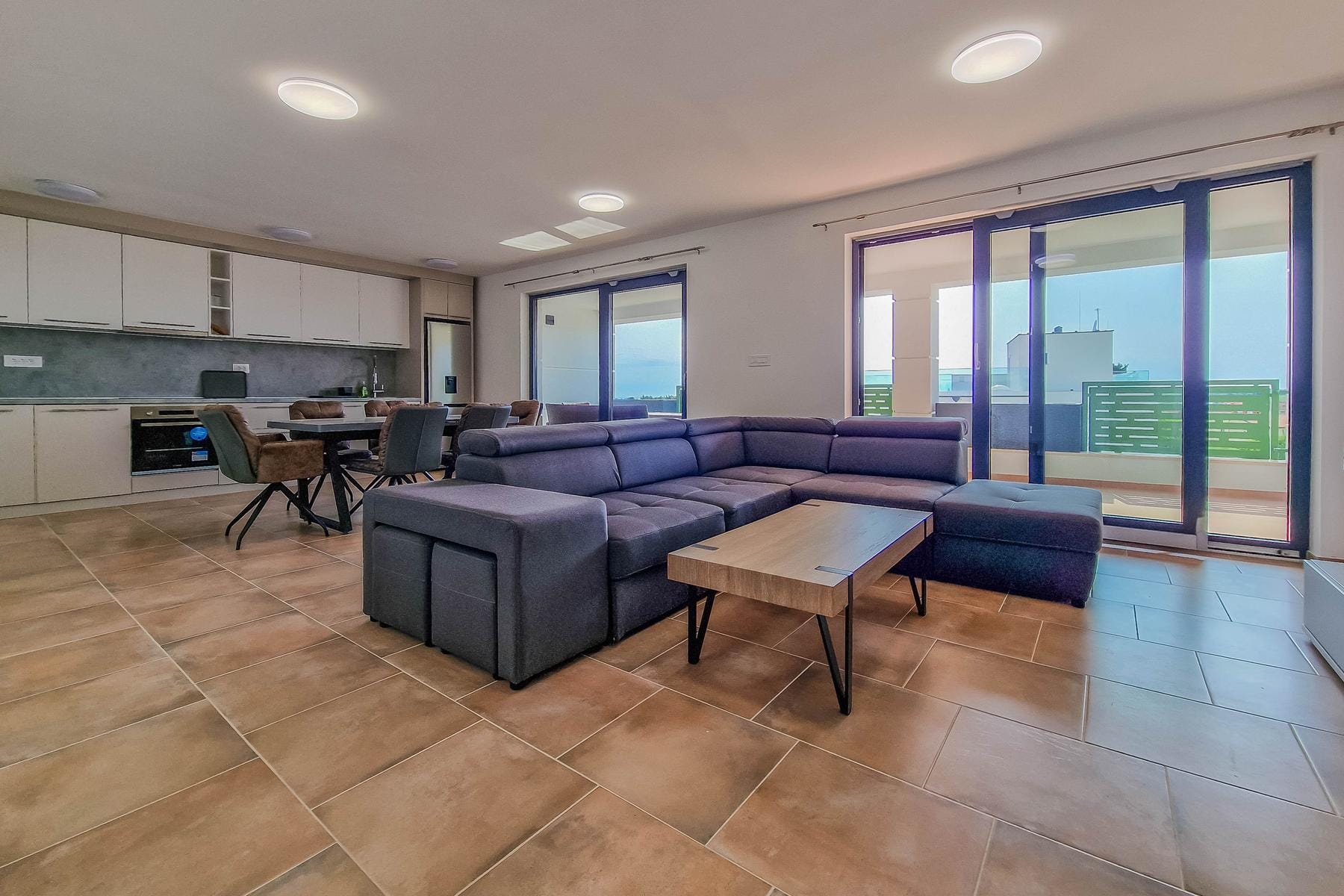 Przedmiotem oferty jest mieszkanie znajdujące się na drugim piętrze trzykondygnacyjnego budynku niedaleko wybrzeża. Mieszkanie jest przestronne, doskonale doświetlone oraz przygotowane do komfortowego użytkowania przez rodzinę lub grupę osób. W centralnej części znajduje się otwarta przestrzeń łącząca kuchnię, jadalnię i salon, co sprzyja integracji i wygodzie. Do mieszkania przynależy duży taras, z którego rozciąga się widok na morze.