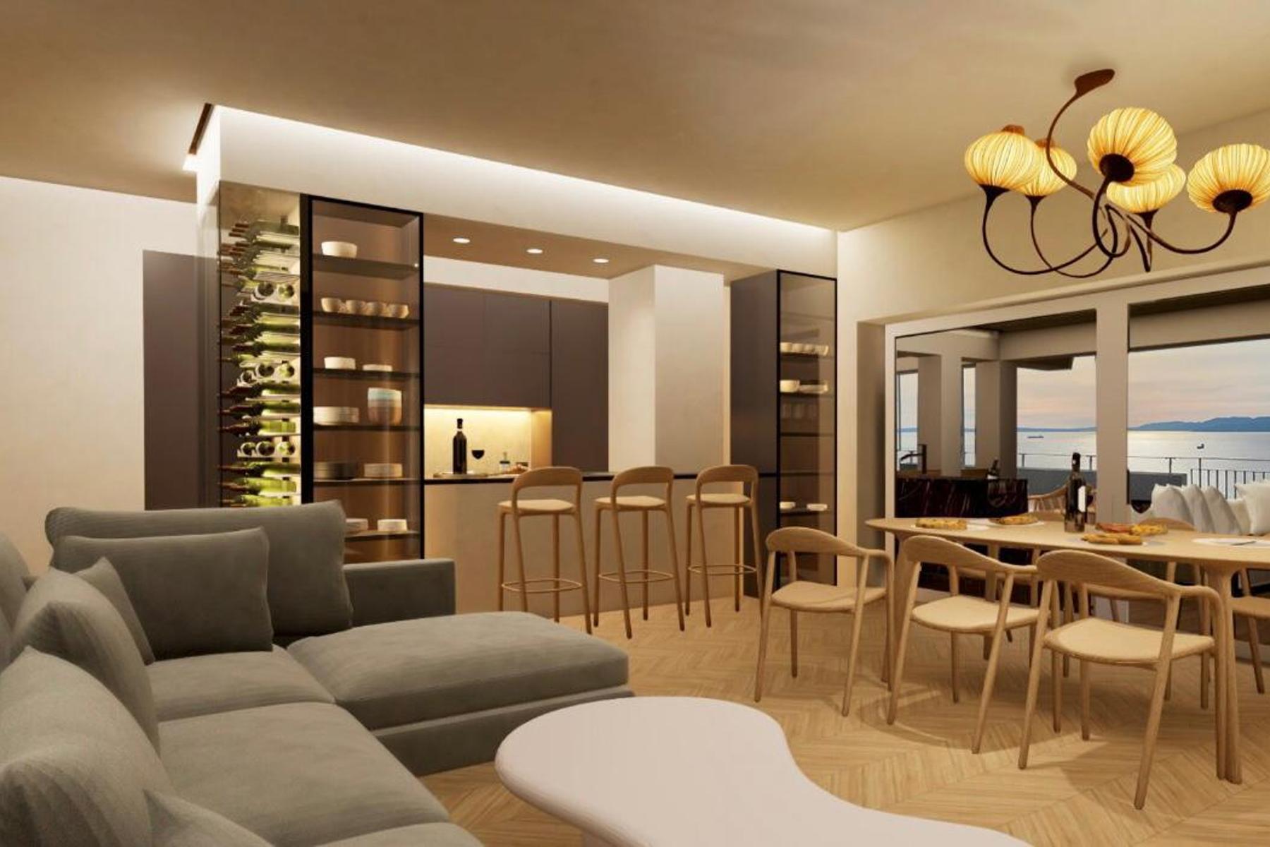 Przestronny penthouse położony w prestiżowej dzielnicy Rijeki zachwyca unikalnym designem oraz spektakularnym widokiem na Zatokę Kvarner. Wnętrza zostały zaprojektowane z myślą o najwyższym komforcie oraz elegancji, tworząc wyjątkową przestrzeń do życia i relaksu. Lokalizacja zapewnia ciszę i spokój, jednocześnie umożliwiając szybki dostęp do miejskich atrakcji i udogodnień. Bliskość eleganckiego kurortu Opatija podkreśla rangę tej nieruchomości, a atrakcyjne otoczenie zachęca do aktywnego wypoczynku i korzystania z lokalnych restauracji oraz kulturalnych wydarzeń.
