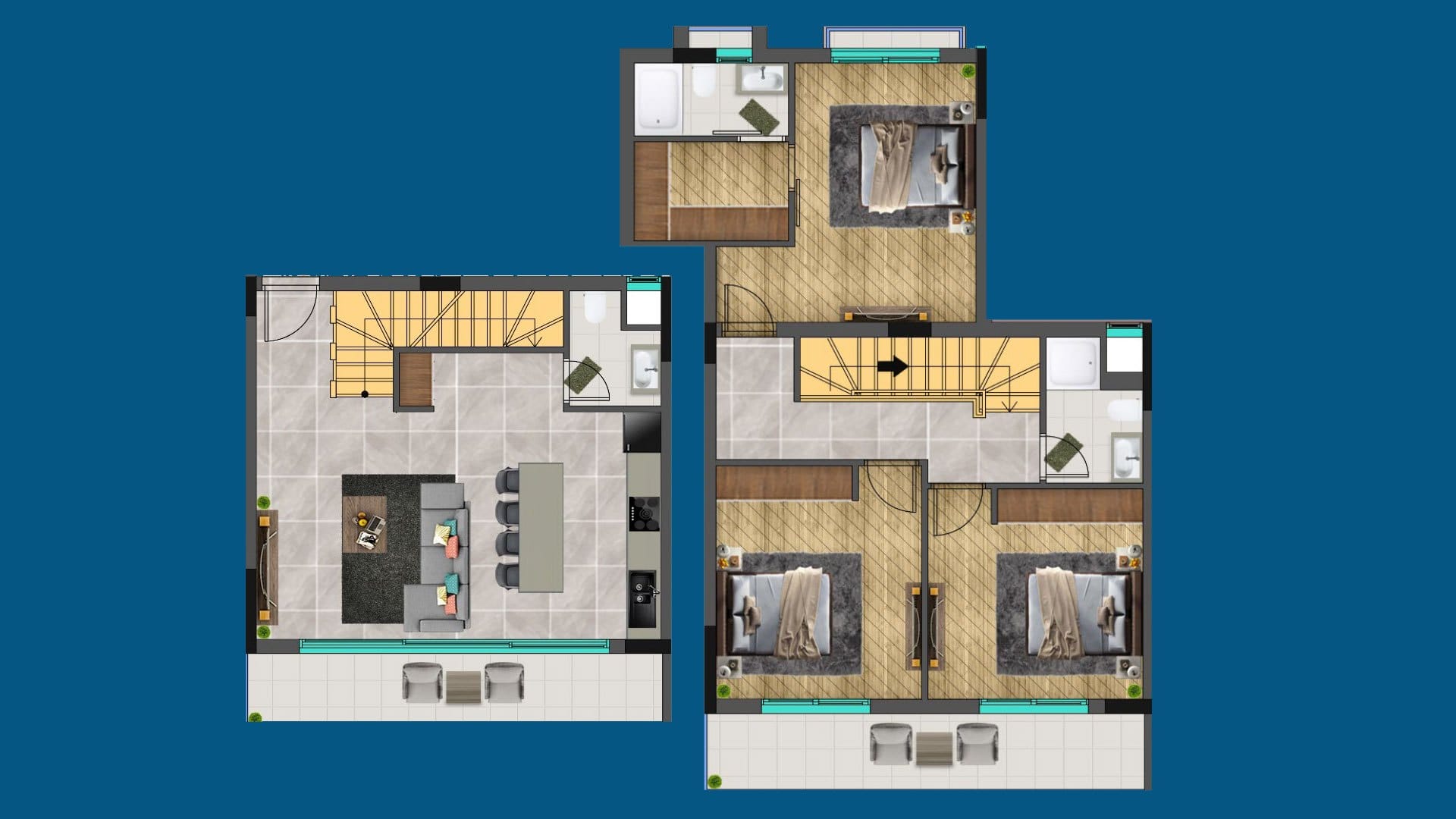 W sercu malowniczej miejscowości Iskele na Cyprze Północnym znajduje się luksusowy dwupoziomowy apartament 3+1, który oferuje wyjątkowe warunki mieszkaniowe dla osób szukających komfortu i elegancji. Rozległa przestrzeń o powierzchni 162 m2 zachwyca nowoczesnym designem i najwyższej jakości wykończeniami, które zadowolą nawet najbardziej wymagających. Na parterze uwagę przyciąga jasna kuchnia harmonijnie połączona z przestronnym salonem, idealnym na spotkania rodzinne i towarzyskie. W części dziennej znajduje się również łazienka i taras, idealny na chwile relaksu na świeżym powietrzu.