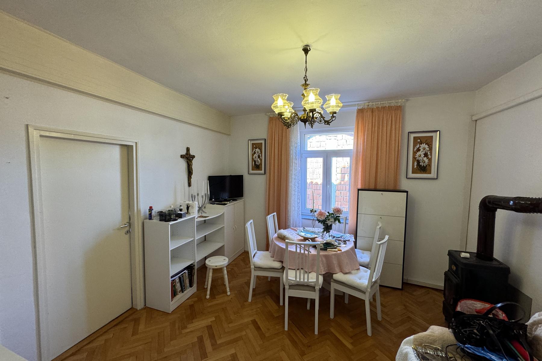 Układ mieszkania obejmuje dwa pokoje, wspólny salon, kuchnię z jadalnią oraz łazienkę. Pomieszczenia są ustawne, co pozwala na swobodne zaaranżowanie przestrzeni według indywidualnych potrzeb. Wysokie okna zapewniają naturalne światło w ciągu całego dnia. Dodatkowym atutem jest przynależne pomieszczenie gospodarcze, które można wykorzystać jako schowek lub garderobę.