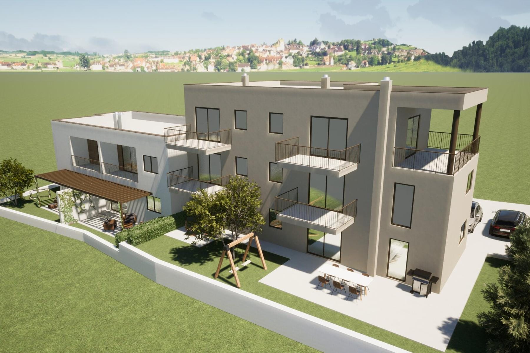 W samym sercu urokliwego Tar-Vabriga powstaje nowoczesny projekt mieszkaniowy z czterema lokalami. Ta nieruchomość to wyjątkowa propozycja dla osób poszukujących miejsca na wypoczynek lub stały pobyt w klimacie nadmorskim. Prezentowane mieszkanie znajduje się na pierwszym piętrze nowo budowanego budynku, co zapewnia spokój oraz dobry widok. Rozkład wnętrz obejmuje dwa wygodne pokoje, łazienkę i przestronny aneks kuchenny połączony z jadalnią oraz salonem. Z salonu można wyjść na loggię, która stanowi idealne miejsce na poranną kawę oraz relaks na świeżym powietrzu.