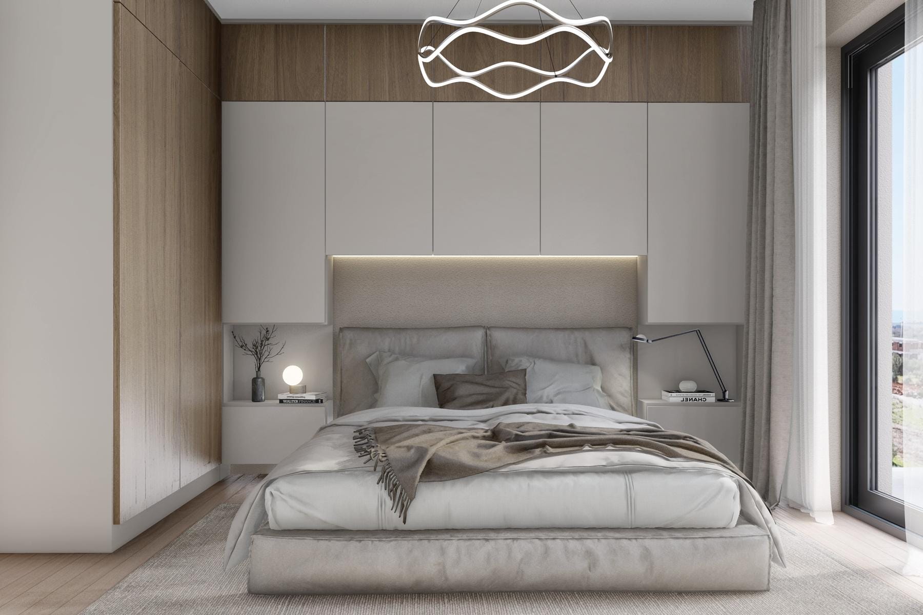 Nieruchomość składa się z dwóch wygodnych sypialni oraz łazienki, zaprojektowanej z dbałością o funkcjonalność. W całym mieszkaniu zastosowano ogrzewanie podłogowe oraz klimatyzację, co zapewnia komfort przez cały rok. Wysokiej jakości wykończenie wnętrz, w tym elementy włoskiego designu, podkreśla elegancję i nowoczesność.