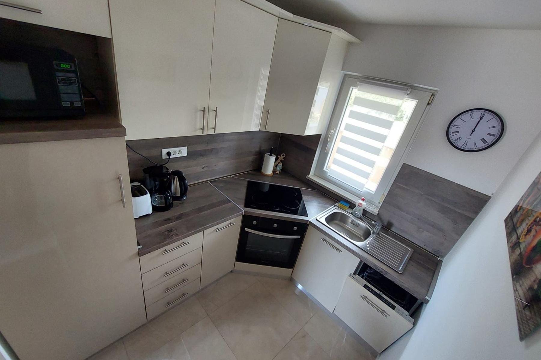 Mieszkanie znajduje się na pierwszym piętrze budynku mieszkalnego w popularnej części Novalji. Układ pomieszczeń został przemyślany tak, by zapewnić maksymalną wygodę użytkowania. Wnętrza są jasne i przestronne dzięki dużym oknom oraz przeszklonym drzwiom prowadzącym na balkon.