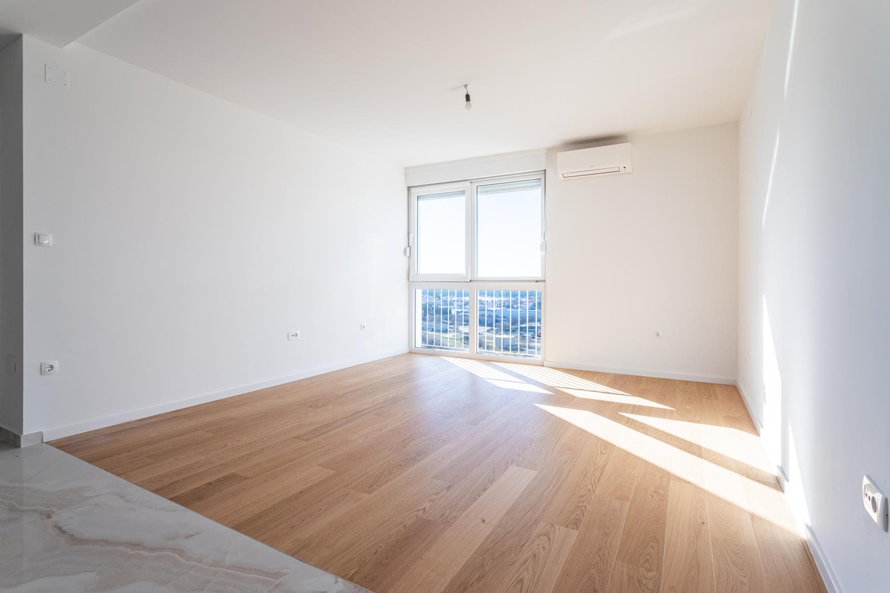 W centralnej części znajduje się przestronny salon połączony z aneksem kuchennym i miejscem jadalnianym. Z salonu oraz jednej z sypialni można wyjść na francuskie balkony, co dodaje wnętrzom lekkości i elegancji. Dwupokojowy układ mieszkania sprawdzi się zarówno dla rodzin, jak i osób pracujących zdalnie, gdyż umożliwia wyodrębnienie strefy prywatnej i reprezentacyjnej. Łazienka została zaprojektowana tak, by zapewnić wygodę i funkcjonalność. Nieruchomość łączy w sobie zalety nowoczesnego standardu i atrakcyjnej lokalizacji w ścisłym centrum kurortu Šibenik.