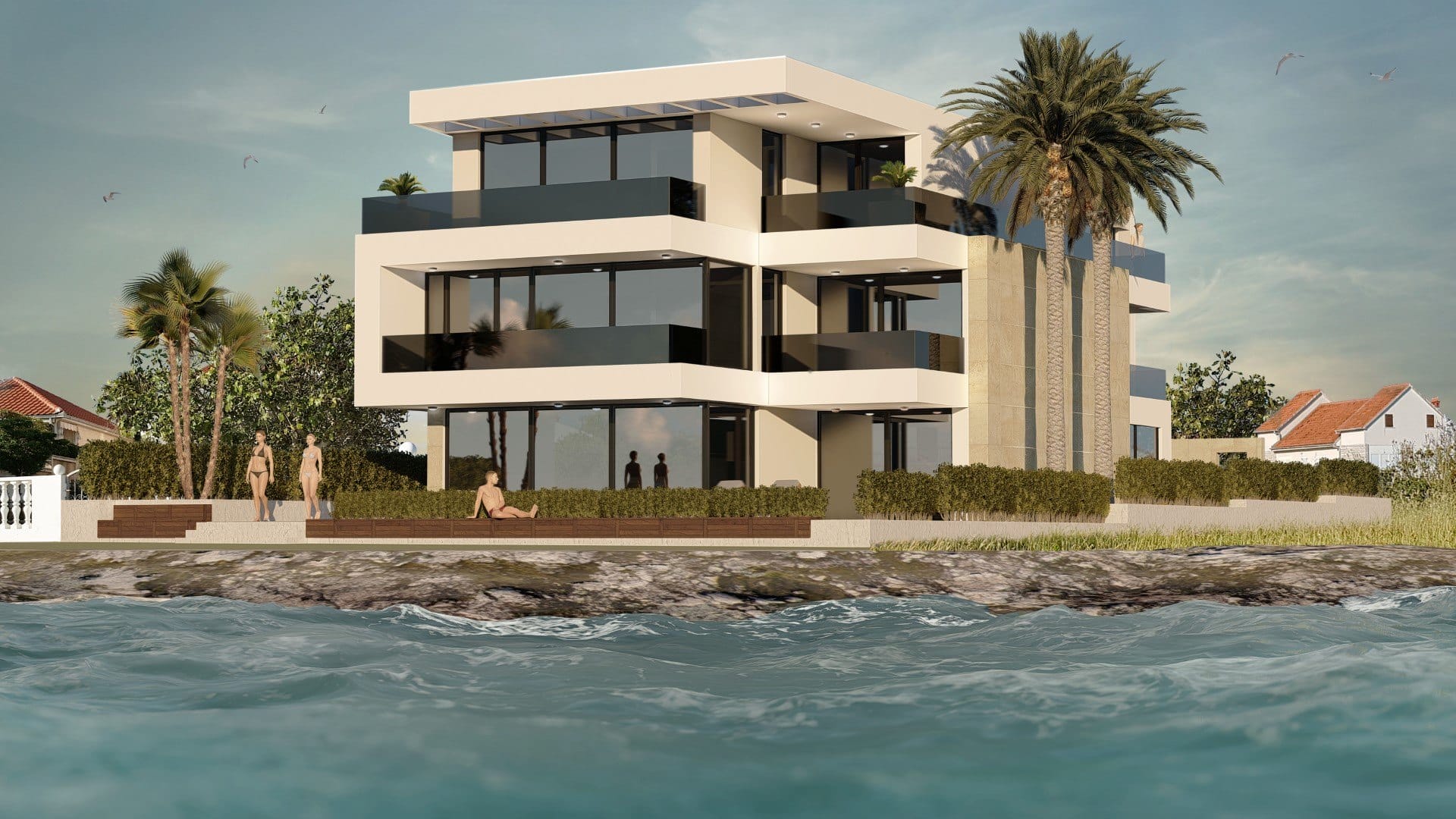 Chorwacja posiada długą linię morską i zdecydowana większość inwestycji w nieruchomości skupia się właśnie w tym rejonie. Morze Adriatyckie w tym rejonie ma bardzo piękne odcienie momentami wręcz widokówkowe. Jest to niewątpliwie ogromny atut turystyczny. Należy jednak podkreślić, że w Chorwacji jest bardzo mało typowych, piaszczystych plaż. Zdecydowanie większa część pasa nadmorskiego to kamieniste brzegi a w okolicy miast nawet betonowe. Oczywiście można w tych miejscach się kąpać, ale często sugerowane jest korzystanie ze specjalnego obuwia ochronnego. Z tego powodu okolice w których występują piaszczyste plaże zarówno w częściach lądowych jak i na wyspach są niezwykle popularne i pożądane. Bardzo urokliwe potrafią być także kameralne zatoczki, które dodają niezwykłego uroku. Niektóre z nich służą także do cumowania jachtów. Ukształtowanie terenu w wielu Chorwackich miejscach jest niezwykle malownicze. Z pięknego morza praktycznie bezpośrednio wyłaniają się malownicze wzgórza a często także wyraźne góry. Takie ukształtowanie nie dość, że bardzo cieszy oko to daje także możliwość nieruchomościom wybudowanym w 10 linii brzegowej na wzgórzach gwarantować piękne panoramy na Morze Adriatyckie.