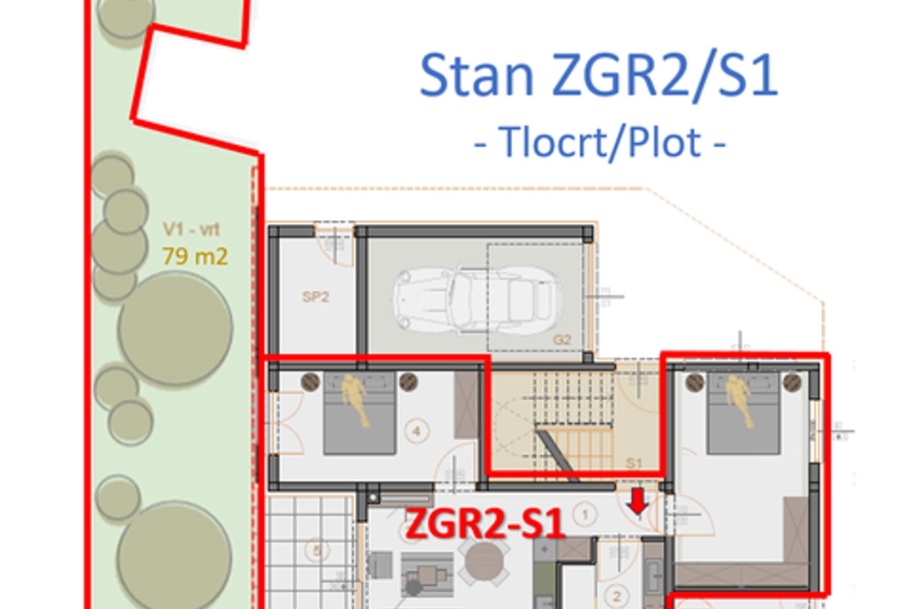 Mieszkanie usytuowane jest na parterze budynku w spokojnej okolicy Veli Vrh. Składa się z dwóch sypialni oraz łazienki, co zapewnia wygodę dla rodziny lub osób poszukujących dodatkowej przestrzeni użytkowej. Przestronny salon połączony jest z jadalnią i kuchnią, tworząc otwartą strefę dzienną.