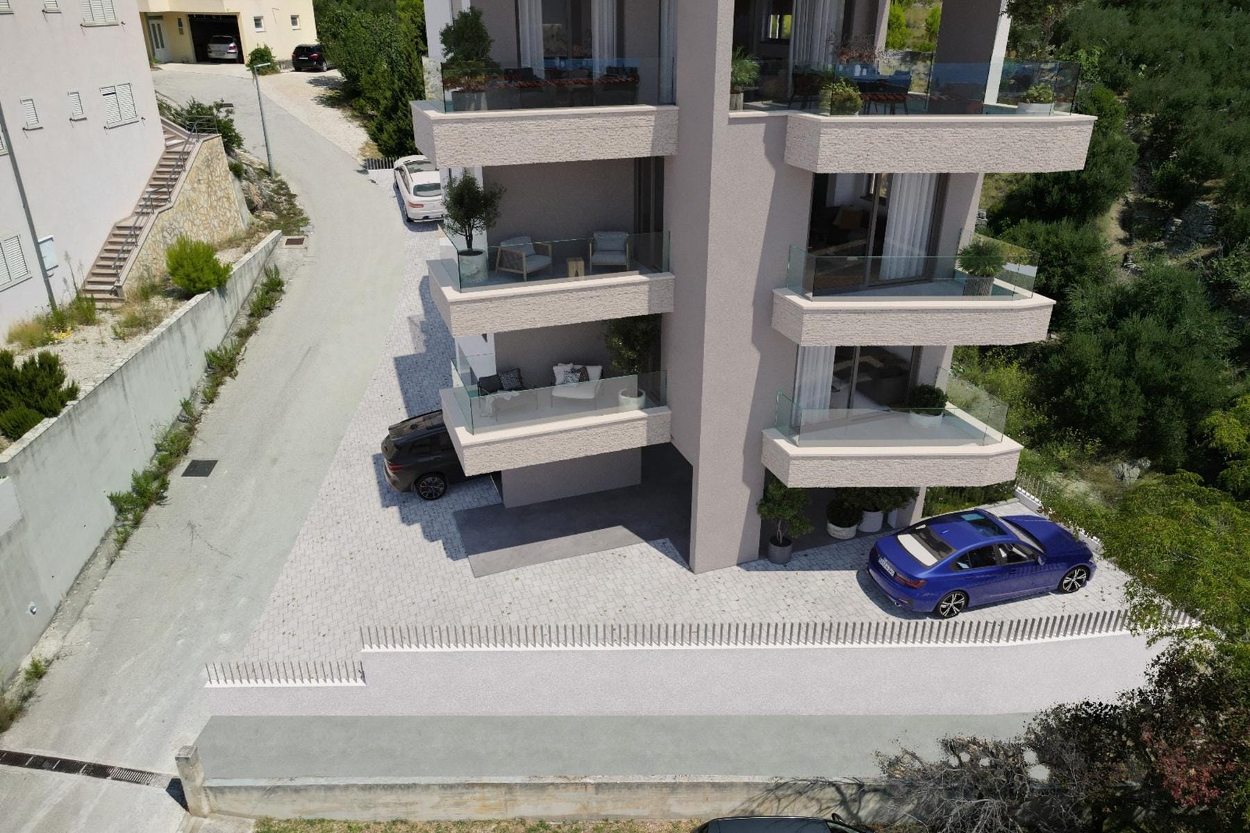 Prezentowana nieruchomość to wyjątkowo komfortowe mieszkanie dwupokojowe usytuowane na pierwszym piętrze nowoczesnego budynku z windą. Lokal znajduje się na popularnym chorwackim wybrzeżu, cechuje się praktycznym rozkładem pomieszczeń i dwoma balkonami, które zapewniają dostęp do świeżego powietrza i relaks z pięknymi widokami. Mieszkanie ma łączną powierzchnię użytkową 71,35 m², w tym 63 m² powierzchni mieszkalnej. Wnętrze zostało zaprojektowane tak, aby spełnić wymagania zarówno osób poszukujących stałego miejsca zamieszkania, jak i tych, którzy chcą korzystać z nieruchomości rekreacyjnie lub pod wynajem.