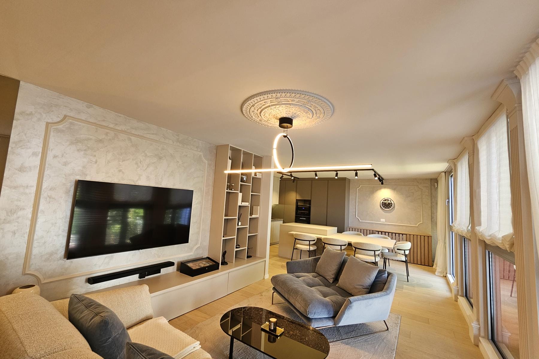 Prezentowana nieruchomość to eleganckie mieszkanie zlokalizowane w centrum Opatiji, które zapewnia komfort oraz funkcjonalność na najwyższym poziomie. Przestrzeń o powierzchni 75 metrów kwadratowych została zaprojektowana z myślą o wymagających właścicielach. Kompleksowa aranżacja wnętrz opiera się na wysokiej jakości materiałach oraz designerskich meblach, które podkreślają styl i nowoczesność. Salony łączą się płynnie z kuchnią oraz jadalnią, tworząc przyjazną przestrzeń do wspólnych spotkań i relaksu.
