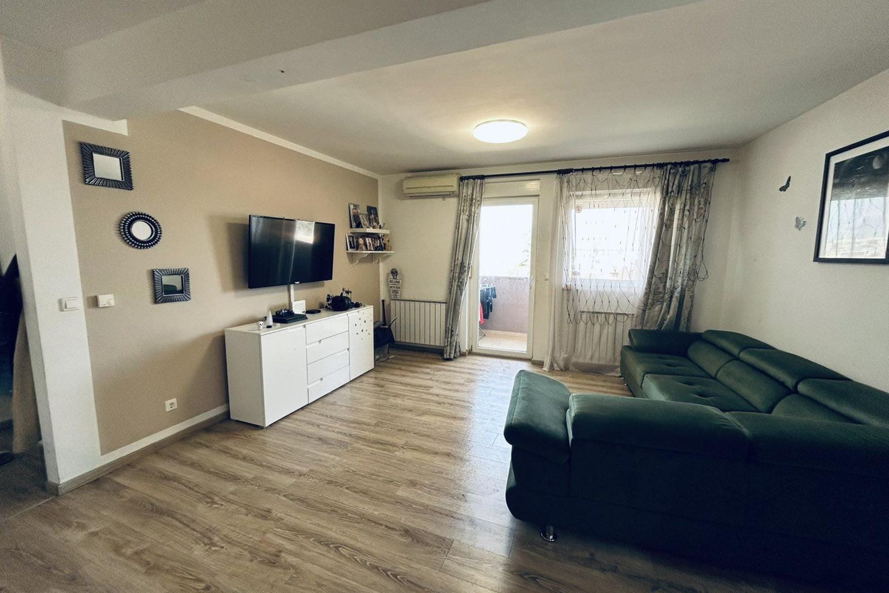 Mieszkanie cechuje się dobrym nasłonecznieniem dzięki dużym oknom oraz balkonu wychodzącego na spokojną stronę budynku. Układ pomieszczeń sprzyja wygodzie i swobodzie aranżacji wnętrz według własnych potrzeb. Kuchnia połączona jest z jadalnią, co ułatwia organizację spotkań rodzinnych lub towarzyskich.
