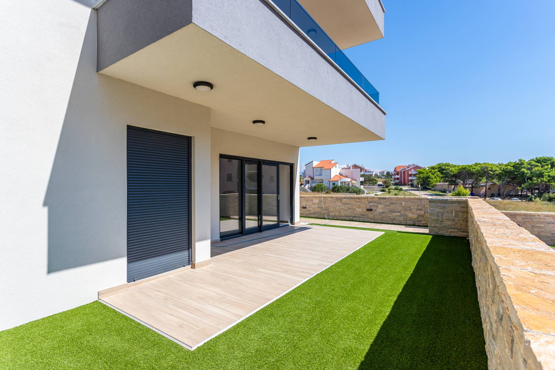 W samym sercu malowniczego miejscowości Povljana na chorwackiej wyspie Pag znajduje się wyjątkowa nieruchomość łącząca komfort z funkcjonalnością. Mieszkanie o powierzchni 84 m² wyróżnia się przemyślanym rozkładem pomieszczeń, który daje poczucie przestrzeni oraz prywatności. Lokal umieszczony jest na parterze nowoczesnego budynku, skąd rozpościera się dostęp do prywatnego ogrodu – idealnego miejsca na relaks na świeżym powietrzu.