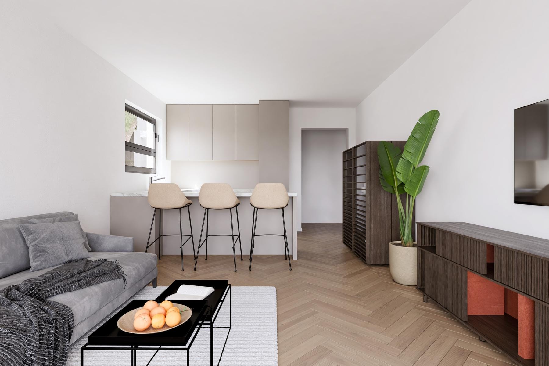 Wnętrza zostały zaprojektowane z dbałością o detale, co wpływa na przyjemną atmosferę każdego dnia. Przestrzeń dzienna łączy w sobie kuchnię z salonem, tworząc otwartą i jasną przestrzeń rekreacyjną. Sypialnie zapewniają intymność oraz odpowiednią przestrzeń do wypoczynku. Nieruchomość posiada bezpośrednie wejście z klatki schodowej.