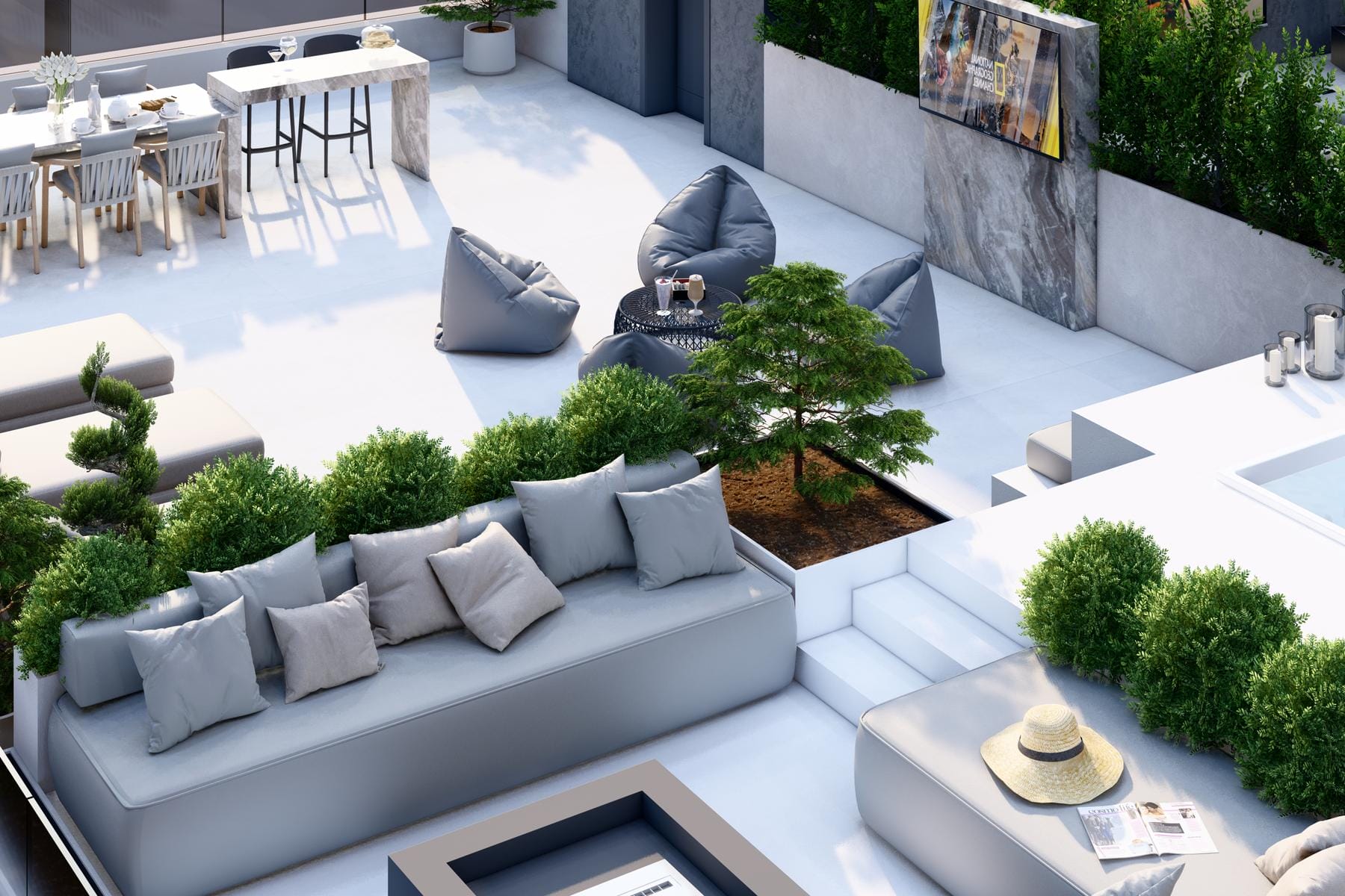 Wysoki standard inwestycji podkreślają eleganckie wykończenia, dostęp do windy oraz basenu. Dwupokojowy apartament zaprojektowano z myślą o maksymalnym komforcie mieszkańców, oferując przestrzeń do wypoczynku i codziennego życia. Uzupełnieniem jest użyteczna kuchnia połączona z jadalnią, która sprzyja wspólnym posiłkom oraz spotkaniom z bliskimi.