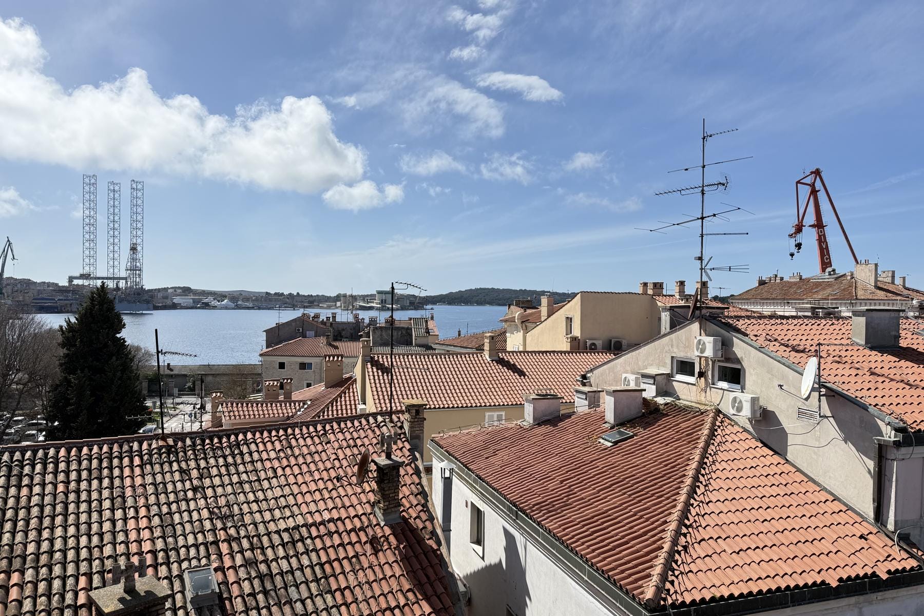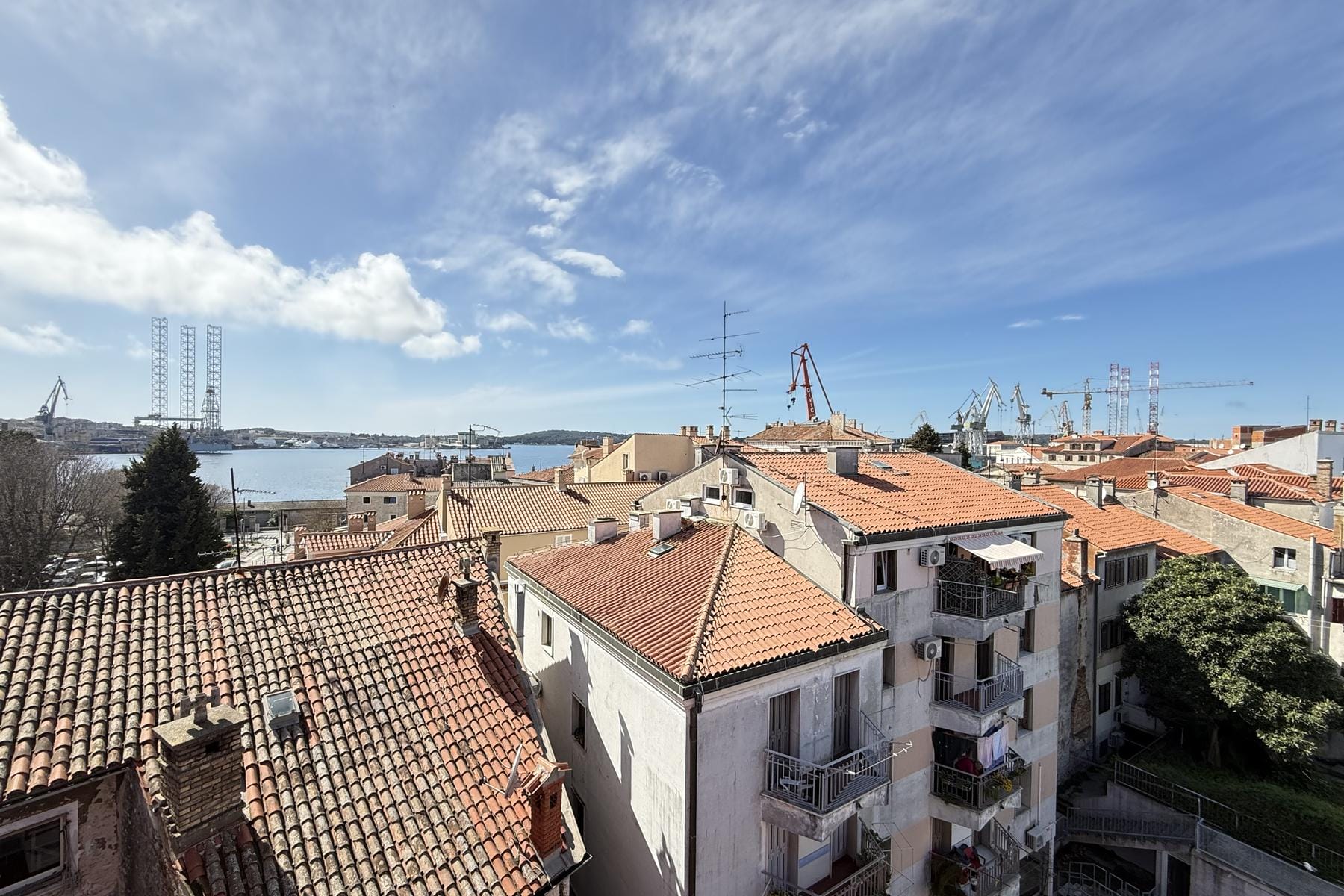 Wyjątkowa nieruchomość usytuowana w samym sercu Puli zachwyca nie tylko lokalizacją, ale także funkcjonalnym układem i jasnym wnętrzem. Dwupoziomowe mieszkanie znajduje się na czwartym piętrze zadbanego budynku, co gwarantuje spokój i komfort użytkowania. Duże okna pozwalają cieszyć się otwartym widokiem na morze oraz okoliczne zabytki. Przestrzeń została zaprojektowana z dbałością o detale, dzięki czemu każdy pokój jest doskonale doświetlony i przyjazny dla mieszkańców.