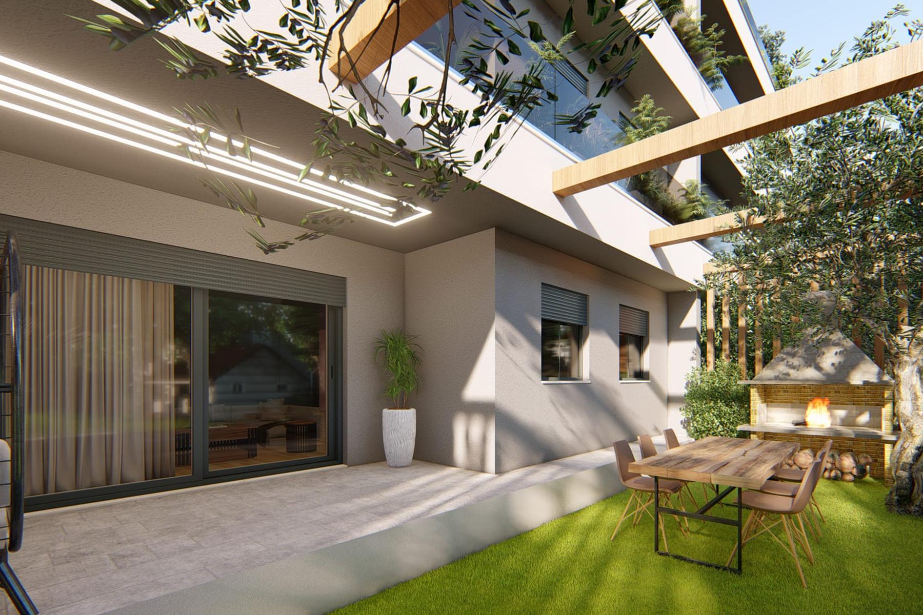 Przestronne mieszkanie położone na parterze nowoczesnego budynku w chorwackim Kaštela to idealna propozycja dla osób szukających luksusu w spokojnej okolicy. Lokal o powierzchni prawie 91 m² oferuje przemyślany rozkład oraz funkcjonalne pomieszczenia. Głównym atutem nieruchomości jest otwarta przestrzeń dzienna, która łączy kuchnię z jadalnią oraz salonem, stanowiąc idealne miejsce do codziennego relaksu oraz przyjmowania gości. Ciepło domowego ogniska podkreśla kominek, który tworzy przytulną atmosferę w chłodniejsze dni.