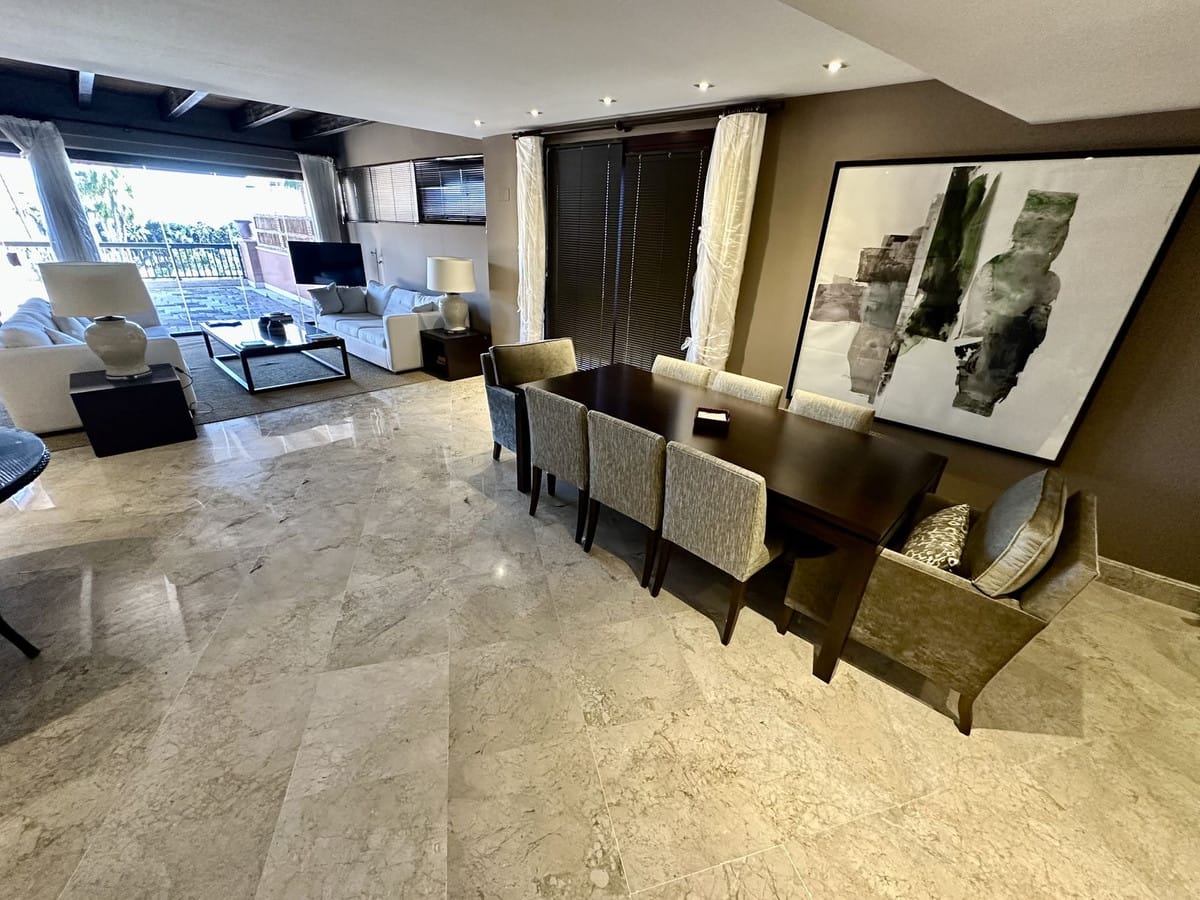 Na sprzedaż oferuje się wyjątkowy penthouse duplex, usytuowany w malowniczej lokalizacji San Pedro de Alcántara w Hiszpanii. Wyróżniający się nowoczesnym designem i dużą przestrzenią, apartament o powierzchni 147 m² łączy w sobie komfort oraz elegancję. Składa się z trzech przestronnych sypialni oraz dwóch nowoczesnych łazienek, co czyni go idealnym wyborem dla rodzin lub osób poszukujących spokojnego miejsca na wypoczynek. Posiada spektakularny widok na morze, a jego usytuowanie w pierwszej linii plaży dodaje niepowtarzalnego uroku. W kompleksie mieszkalnym znajdują się liczne udogodnienia, w tym pięknie zaprojektowany ogród oraz basen, a także całodobowa ochrona, co zapewnia poczucie bezpieczeństwa i prywatności. Ten luksusowy apartament stanowi doskonałą inwestycję dla osób pragnących korzystać z uroków śródziemnomorskiego stylu życia.