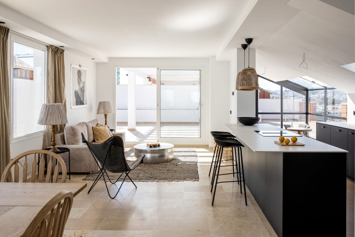 Wyjątkowe propozycje nieruchomości w Hiszpanii cieszą się niezmiennie dużym zainteresowaniem. Oferowany penthouse w urokliwej dzielnicy Los Pacos to doskonała okazja dla osób poszukujących luksusu połączonego z bliskością natury. Ta wspaniała posiadłość, usytuowana w malowniczej okolicy, zapewnia nie tylko komfort, ale i niezwykłe widoki na morze oraz góry. Spędzanie czasu na przestronnym tarasie o powierzchni 181 m² stanowi idealne miejsce na relaks. Wnętrze zostało całkowicie odnowione, co gwarantuje wysoką jakość użytych materiałów oraz nowoczesne podejście do designu. Przestronność zapewniają przesuwne szklane drzwi oraz okna, które wypełniają przestrzeń naturalnym światłem. Ponadto, lokalizacja sprzyja codziennym spacerom na plażę, co czyni tę ofertę jeszcze bardziej atrakcyjną.