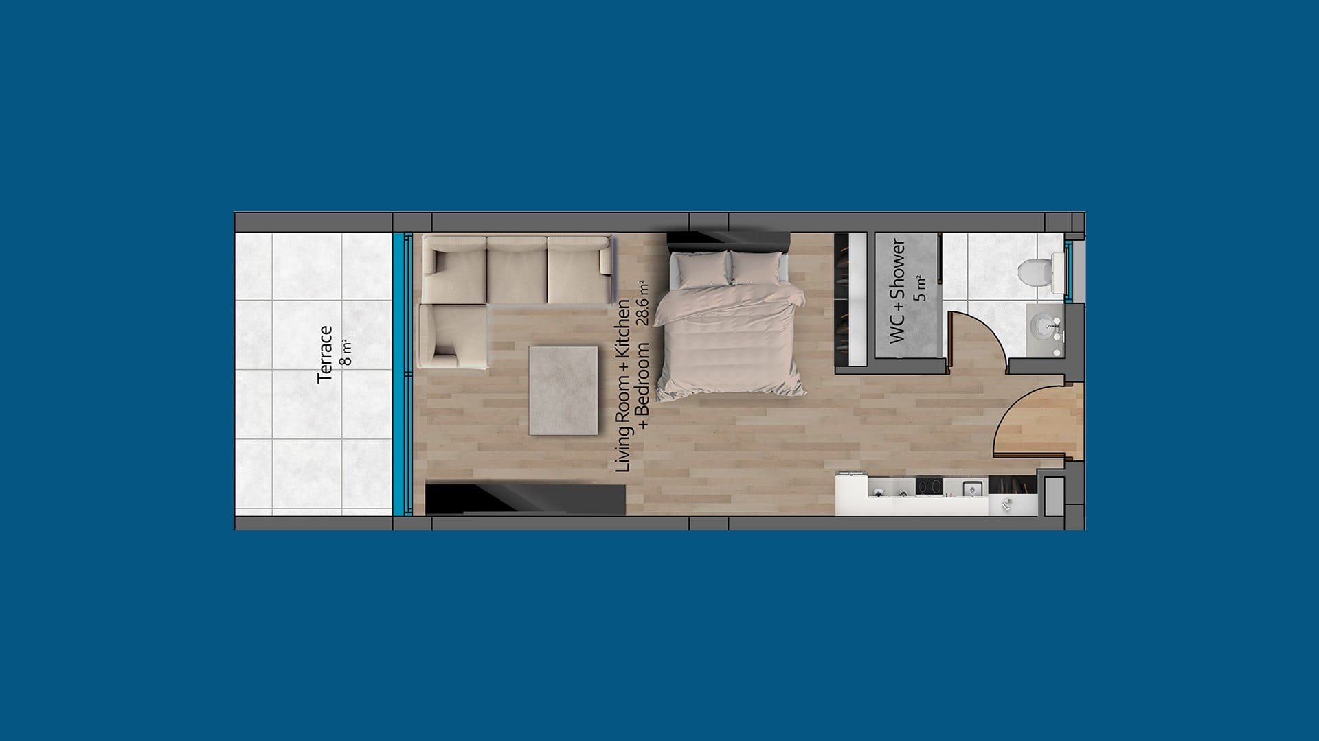 Poszukiwania idealnego miejsca do życia na Cyprze Północnym kończą się tutaj. Penthouse o powierzchni 78 m² oferuje nieskończone możliwości aranżacyjne. Cechuje się on przestrzenią studia, w której każda strefa została starannie zaplanowana, aby dostarczyć pełen komfort. Wnętrze umożliwia własną interpretację stylu, z otwartym układem, który można dostosować do indywidualnych potrzeb. Na uwagę zasługują dwa wyjątkowe miejsca: przestronny balkon o powierzchni 8 m² oraz rozległy taras o powierzchni 35 m², z którego roztacza się spektakularny widok na morze.