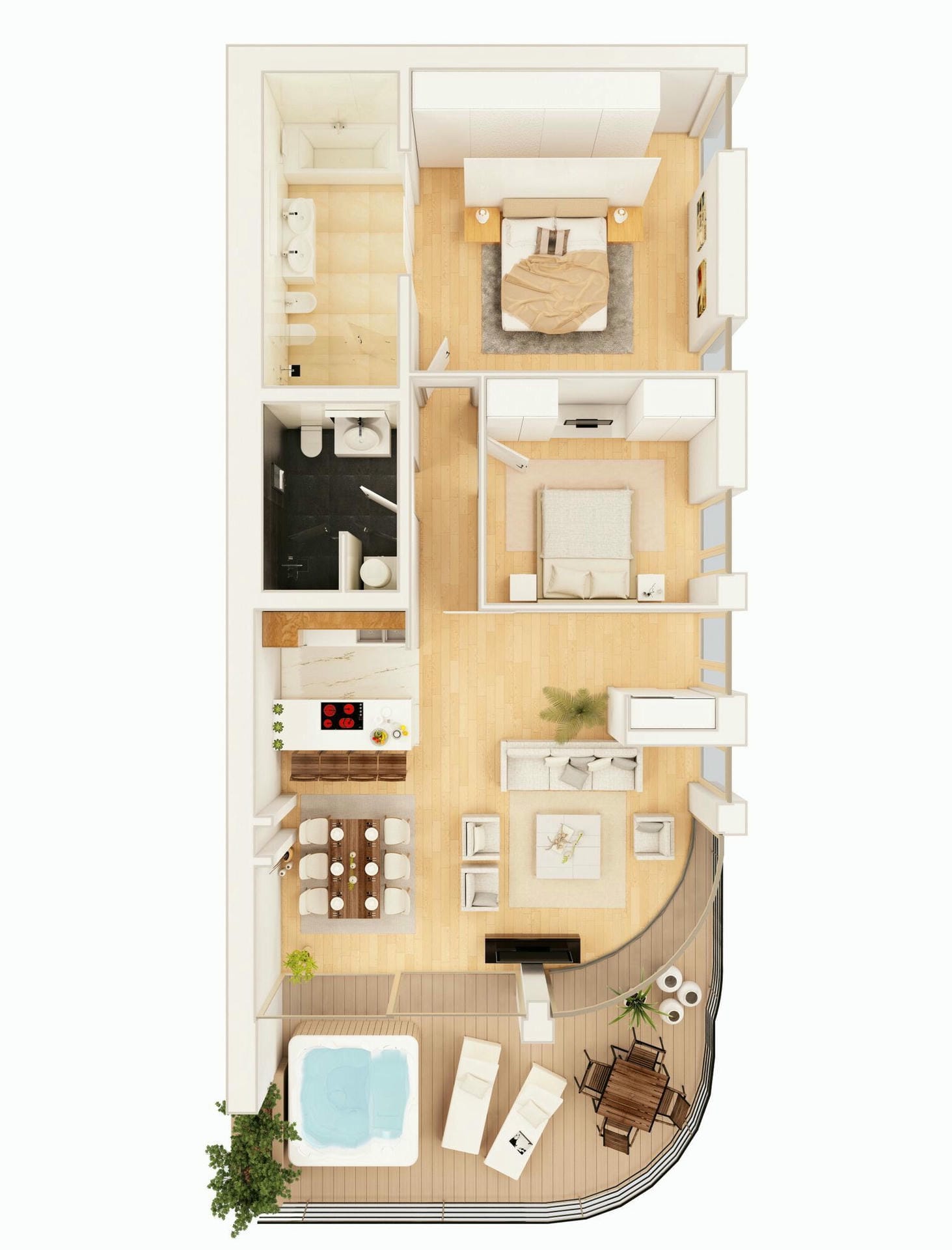 Elegancko zaprojektowane wnętrze oraz liczne udogodnienia zapewniają wyjątkowe doświadczenia, zarówno jako miejsce do zamieszkania, jak i inwestycja.