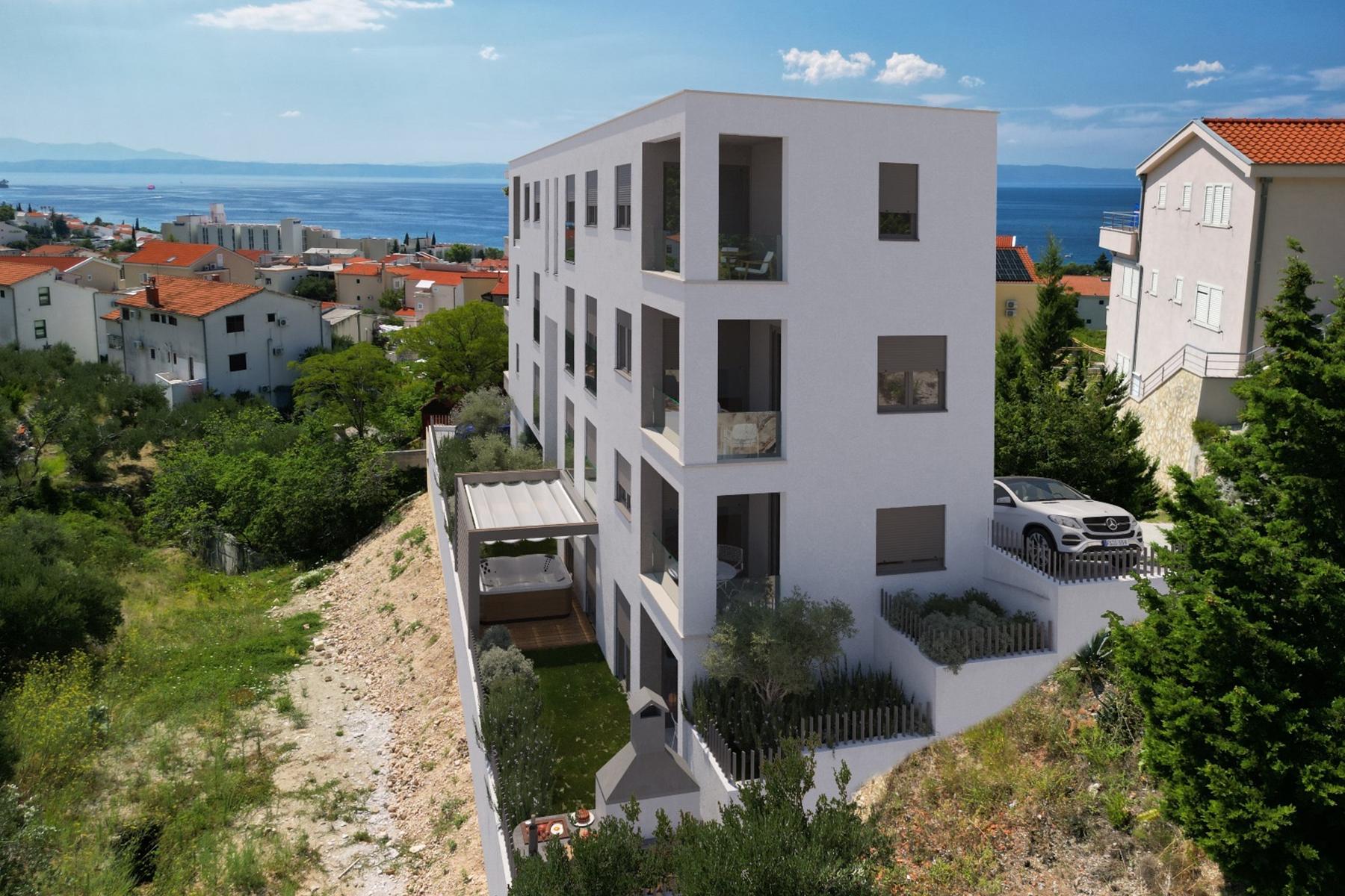 Elegancki i praktyczny rozkład mieszkania zapewnia komfort zarówno podczas codziennego użytkowania, jak i podczas spotkań z bliskimi. Wysokie sufity i duże okna gwarantują dobre doświetlenie, a widok na otwarte morze stanowi dodatkowy atut. Budynek jest nowoczesny i zadbany, a winda ułatwia dostęp do lokalu. Dwustronność mieszkania pozwala na optymalną wentylację oraz nasłonecznienie. Przestronne tarasy sprzyjają relaksowi na świeżym powietrzu oraz podziwianiu panoramy Adriatyku.