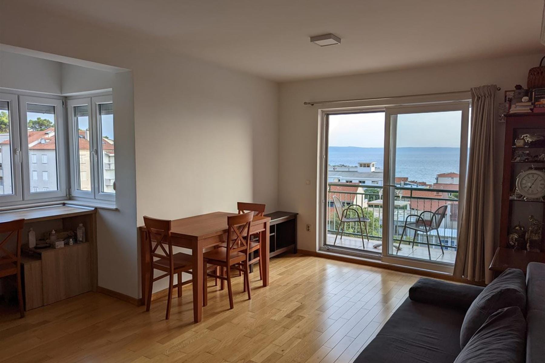 To komfortowe mieszkanie o powierzchni 78,63 m² znajduje się w dogodnej lokalizacji niedaleko centrum Makarskiej. Usytuowane na trzecim piętrze nowoczesnego budynku, zapewnia wiele światła i świeżego powietrza dzięki ekspozycji północ-południe-wschód. Mieszkanie cechuje się przestronnym układem, składającym się z trzech pokoi, które można zaaranżować jako sypialnie oraz dużego, jasnego salonu. Z wnętrza rozpościera się doskonały, niezakłócony widok na morze, który tworzy wyjątkową atmosferę relaksu przez cały rok.