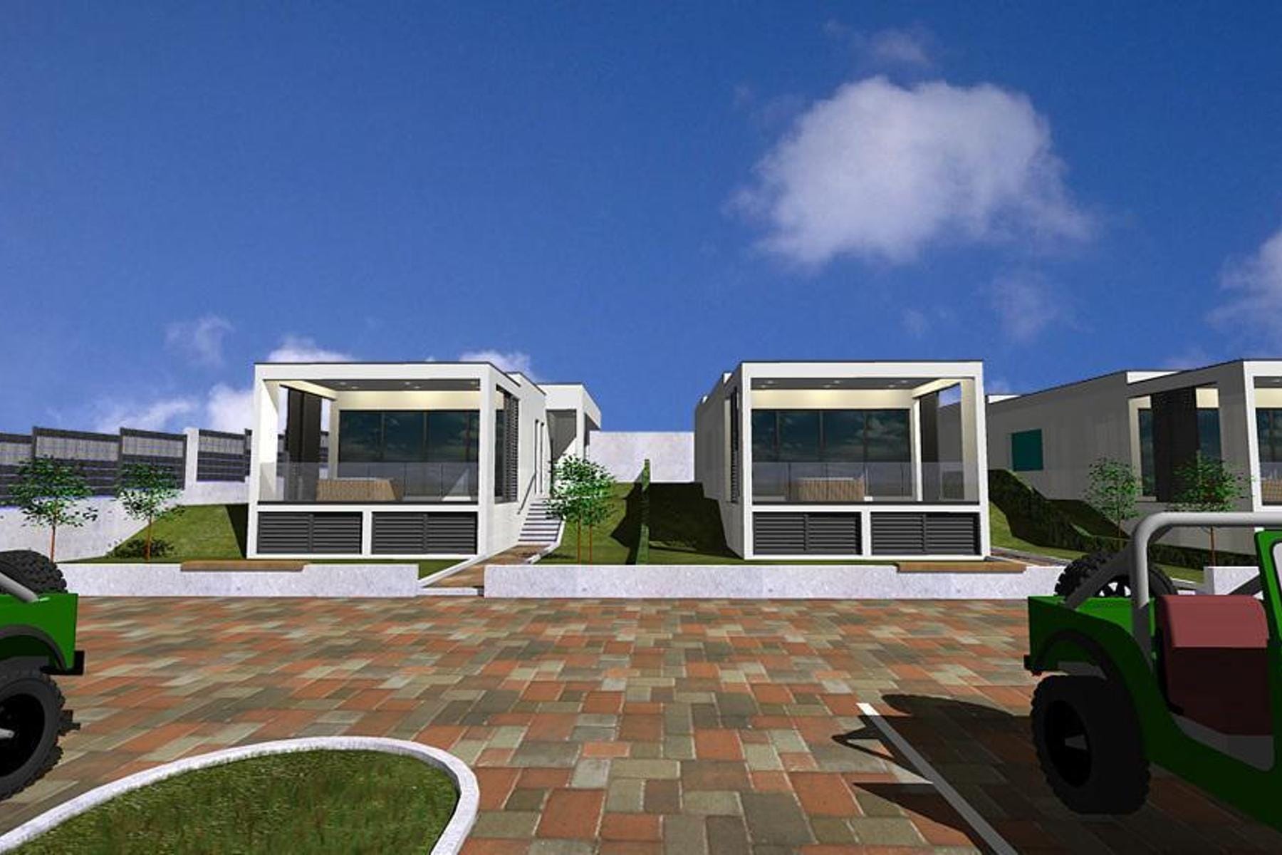 Przestronny salon połączony z jadalnią oraz kuchnią tworzy otwartą strefę dzienną, która sprzyja wspólnemu spędzaniu czasu. Dwie sypialnie pozwalają na wygodne zakwaterowanie rodziny lub gości. W domu znajduje się także łazienka oraz dodatkowe pomieszczenie gospodarcze z kuchnią, co zwiększa jego praktyczność. Dopełnieniem jest przestronna tarasowa część wypoczynkowa o powierzchni 22 m², gdzie można relaksować się na świeżym powietrzu i cieszyć się widokiem otaczającej zieleni.