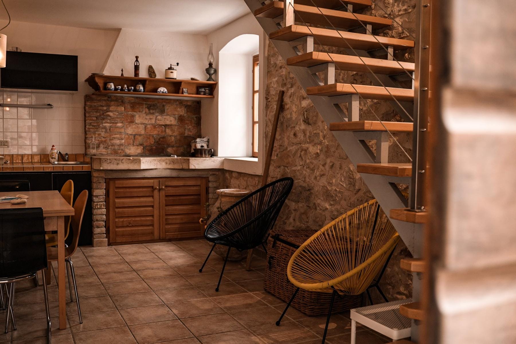 Wnętrze obejmuje wiele funkcjonalnych rozwiązań dopasowanych do rodzinnego stylu życia oraz rekreacji. Elementy kamienia nadają naturalny klimat, a wielopoziomowa konstrukcja zapewnia intymność oraz swobodę aranżacji pomieszczeń. Takie usytuowanie oraz konstrukcja sprawiają, że dom jest idealnym miejscem na zamieszkanie lub inwestycję z możliwością wynajmu.