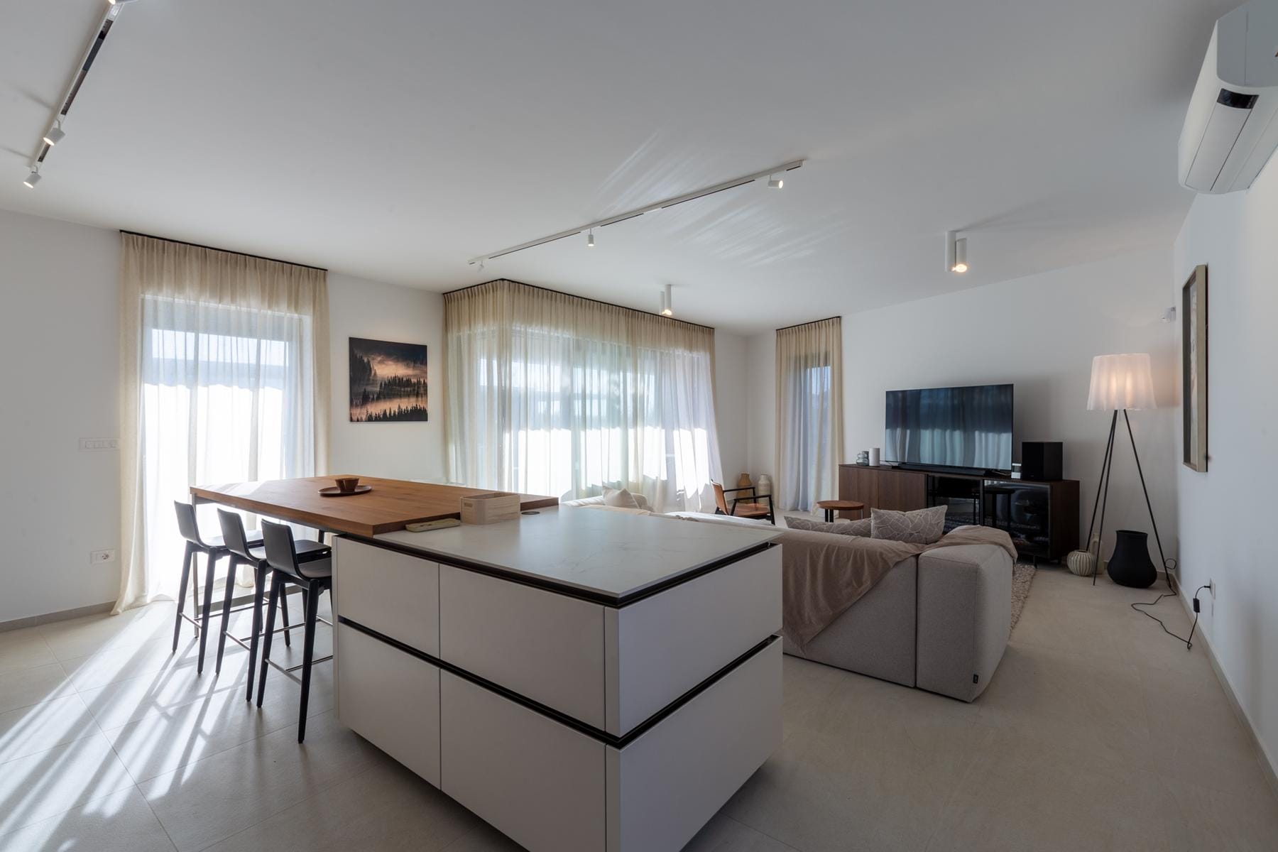 Nowoczesny dom położony w spokojnej okolicy Kaštelir-Labinci jest idealną propozycją dla osób poszukujących komfortowego i funkcjonalnego miejsca do życia. Ta nieruchomość o powierzchni 147 m² została zaprojektowana z myślą o wygodzie oraz praktyczności. Otwarte przestrzenie łączą kuchnię z jadalnią i salonem, co sprzyja rodzinnej atmosferze i spotkaniom z gośćmi.