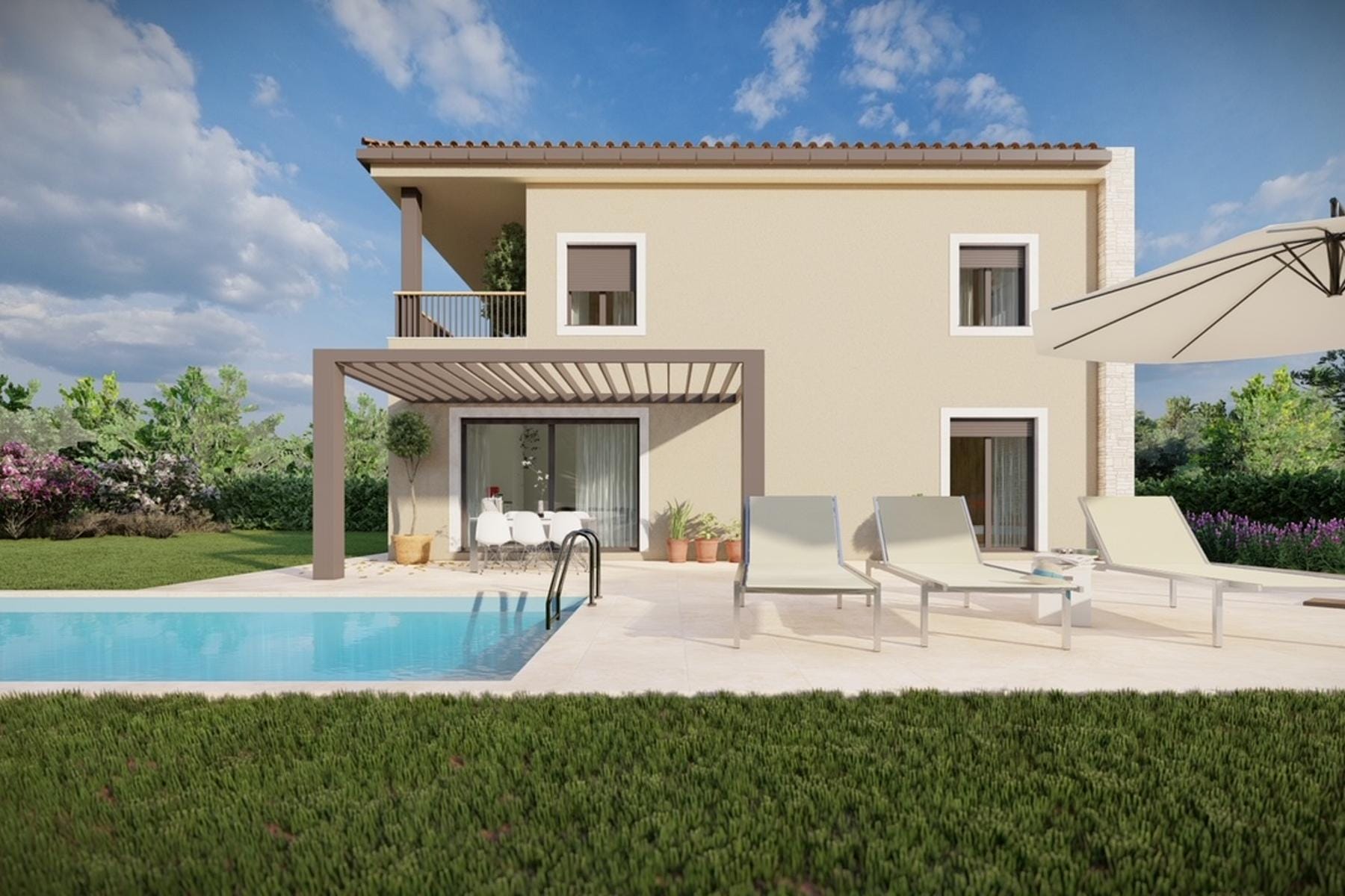 Dom położony jest na działce o powierzchni 698 m², dzięki czemu istnieje wiele miejsca na różnorodne aranżacje ogrodowe i rekreacyjne. Architektura domu łączy nowoczesność z tradycyjnym stylem regionu Istrii, co podkreśla kamienna elewacja. Wnętrza są przestronne i jasne, zapewniając komfortowe warunki mieszkalne. Czyste linie i funkcjonalny rozkład pomieszczeń sprzyjają wygodnemu użytkowaniu nieruchomości zarówno na co dzień, jak i podczas spotkań rodzinnych.