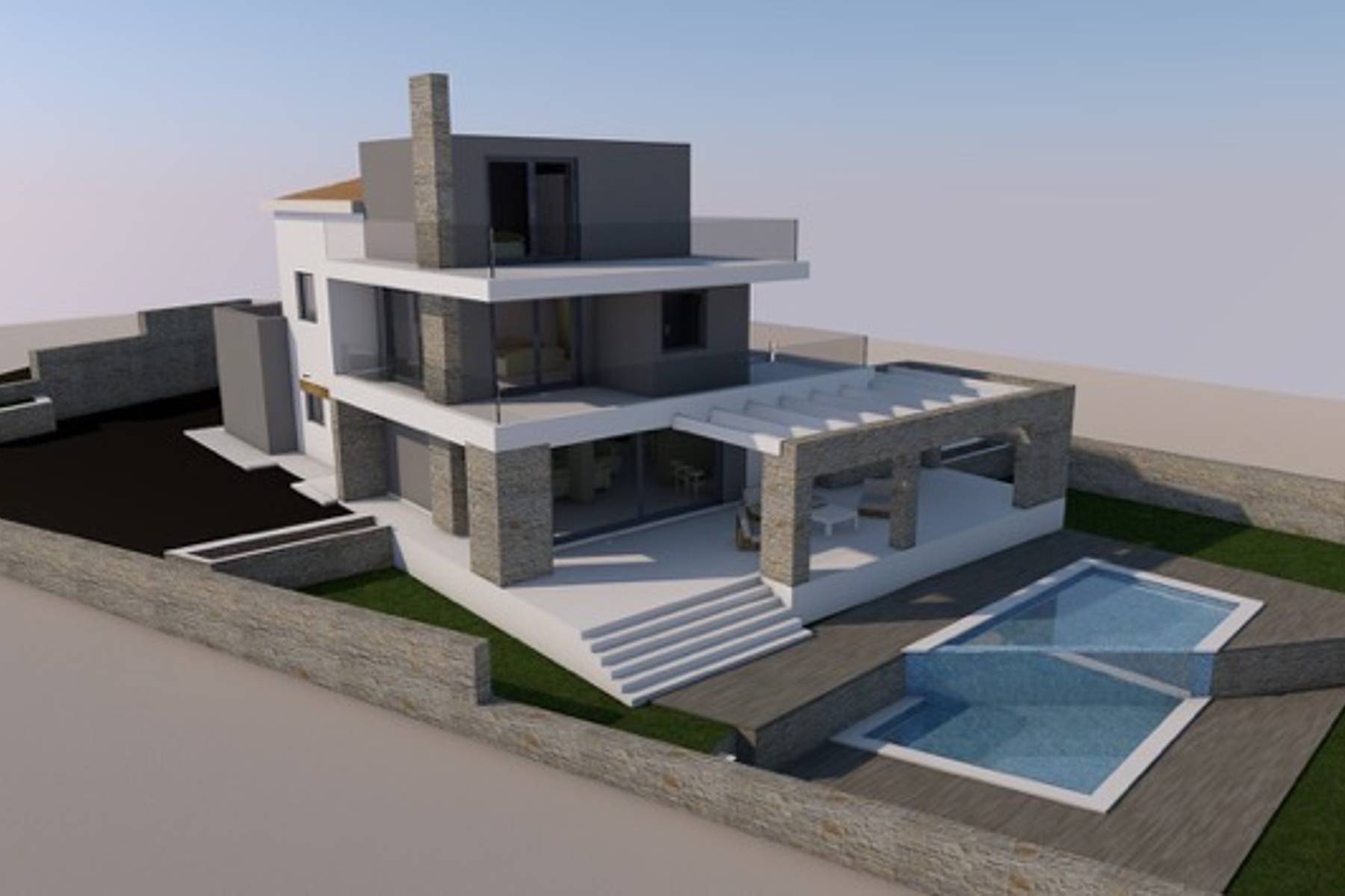 Obecny stan techniczny wymaga prac remontowych, co pozwala na swobodną realizację inwestycji zgodnej z indywidualnymi potrzebami. Projekt poprawy funkcjonalności obejmuje rozbudowę domu do dwóch kondygnacji. Dzięki temu nieruchomość może stać się komfortowym miejscem zamieszkania dla całej rodziny. Z pierwszego piętra roztacza się częściowy widok na morze, co dodaje wyjątkowego klimatu i waloru estetycznego.