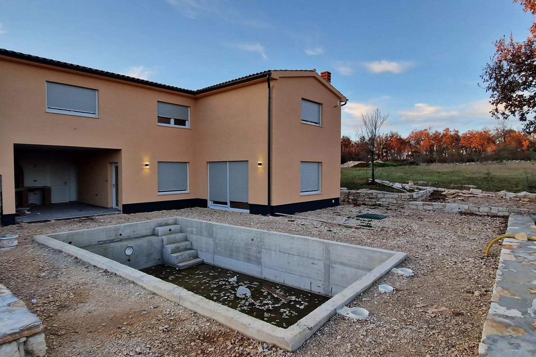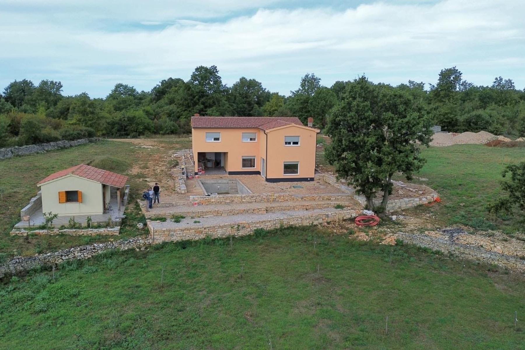 W spokojnej okolicy miasta Svetvinčenat, położonego niedaleko słynnej Puli, znajduje się wyjątkowa nieruchomość otoczona naturą. Dom o powierzchni 190 metrów kwadratowych powstał w 2022 roku, oferując funkcjonalny rozkład pomieszczeń i nowoczesne rozwiązania. Parter składa się z przestronnego salonu połączonego z kuchnią i jadalnią, co tworzy wygodną przestrzeń do codziennego życia i spotkań z rodziną. Do wypoczynku zachęca duża, zadaszona terasa, z której roztacza się malowniczy widok na basen i otaczający krajobraz.