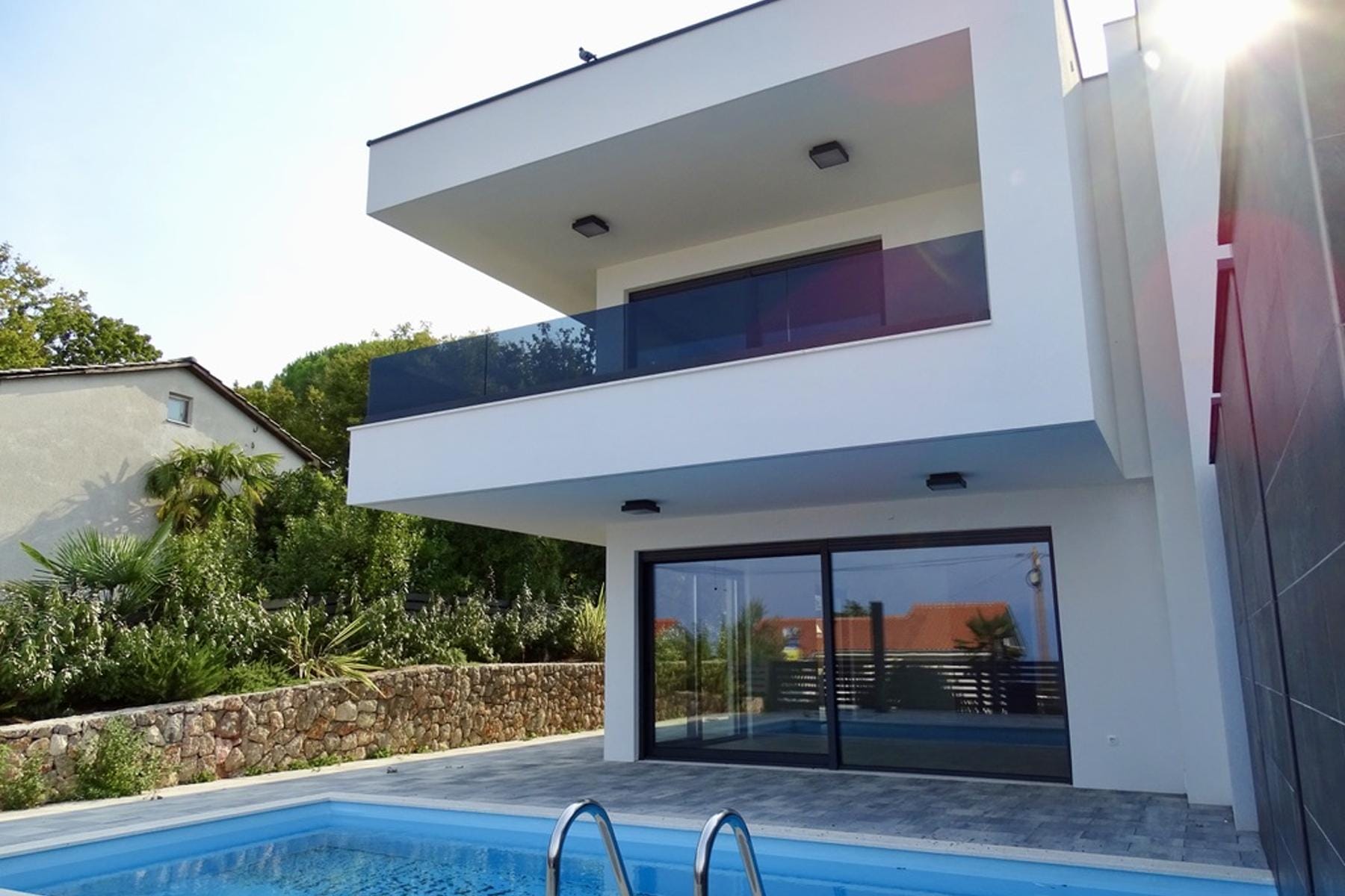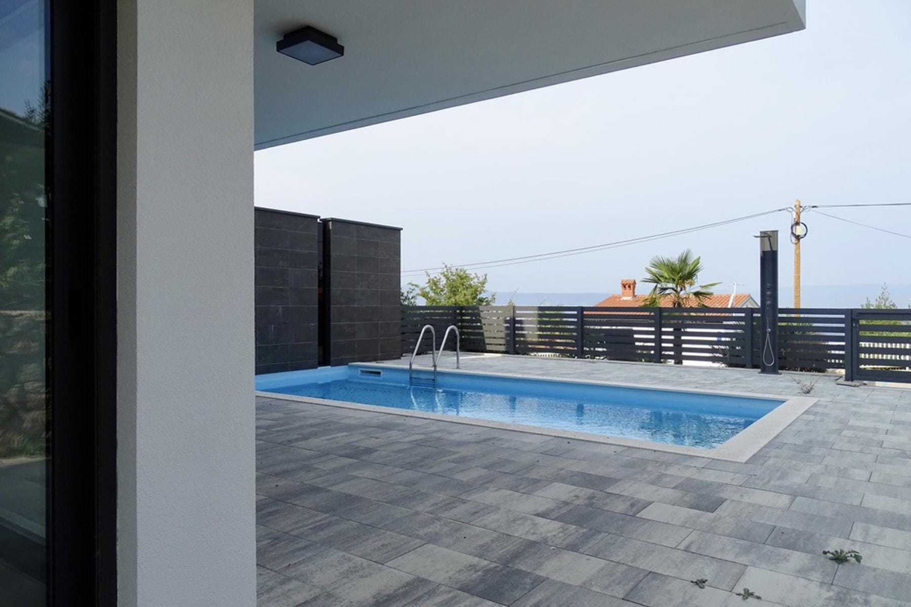 Wnętrza łączą nowoczesny design z użytecznością – duże przeszklenia wpuszczają do środka dużo światła, a podłogowe ogrzewanie podnosi komfort użytkowania. Nieruchomość dysponuje przestronnymi pokojami oraz trzema eleganckimi łazienkami. Zapewniono również wygodne miejsce parkingowe z wiatą, co wpływa na wygodę mieszkańców i gości. Inwestycja stanowi wyjątkową okazję do zakupu domu blisko morza w popularnej części Chorwacji.