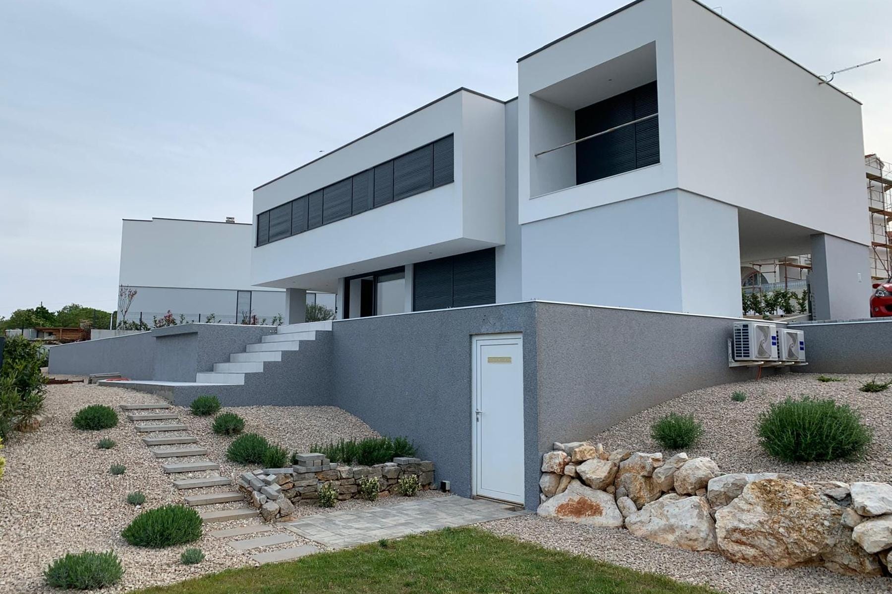 Ta luksusowa willa położona jest na malowniczej wyspie Krk, w miejscowości o tej samej nazwie. Obiekt zachwyca nowoczesnym designem, który łączy styl z funkcjonalnością. Przestronne wnętrza doświetlają duże okna, które otwierają się na przepiękne widoki na morze. Parter domu to wyjątkowa przestrzeń dzienna, w której salon bezproblemowo łączy się z jadalnią i kuchnią, co doskonale sprzyja wspólnemu spędzaniu czasu w rodzinnej atmosferze.