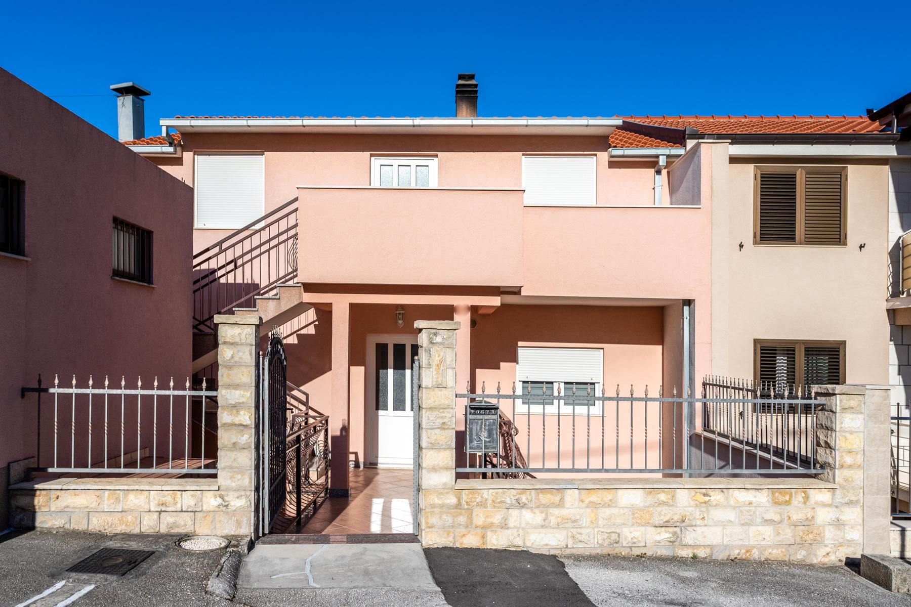 Oferta prezentuje wyjątkową nieruchomość mieszkalną usytuowaną w spokojnej części Splitu. Budynek typu bliźniak o łącznej powierzchni użytkowej 344 m² dysponuje trzema osobnymi lokalami mieszkalnymi, co czyni go doskonałym rozwiązaniem dla rodziny wielopokoleniowej lub inwestora. Każde piętro stanowi niezależną jednostkę mieszkalną, co daje prywatność i komfort wszystkim mieszkańcom. Dom postawiony na działce o powierzchni 428 m² obejmuje również dwa budynki gospodarcze – przestronny garaż oraz magazyn, które można wykorzystać wedle potrzeb.