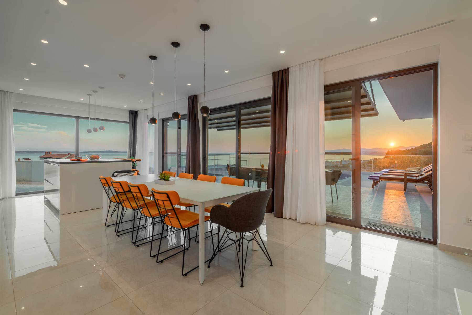 Wyjątkowa nieruchomość usytuowana w malowniczej Podstranie jest synonimem komfortu i luksusu. Willa rozciąga się na trzech poziomach, oferując imponującą powierzchnię użytkową przekraczającą 360 m². Otwarta przestrzeń dzienna z dużymi przesuwanymi ścianami doskonale integruje wnętrze z otoczeniem, jednocześnie dostarczając spektakularne widoki na morze. Cztery sypialnie, każda z osobną łazienką, zapewniają prywatność i wygodę dla mieszkańców i gości. Nieruchomość wyróżnia się także bogatym zapleczem rekreacyjnym, które spełni oczekiwania wymagających użytkowników.