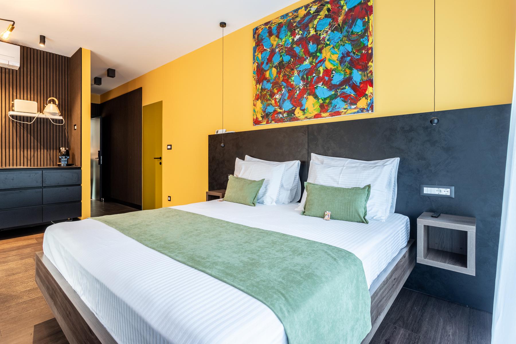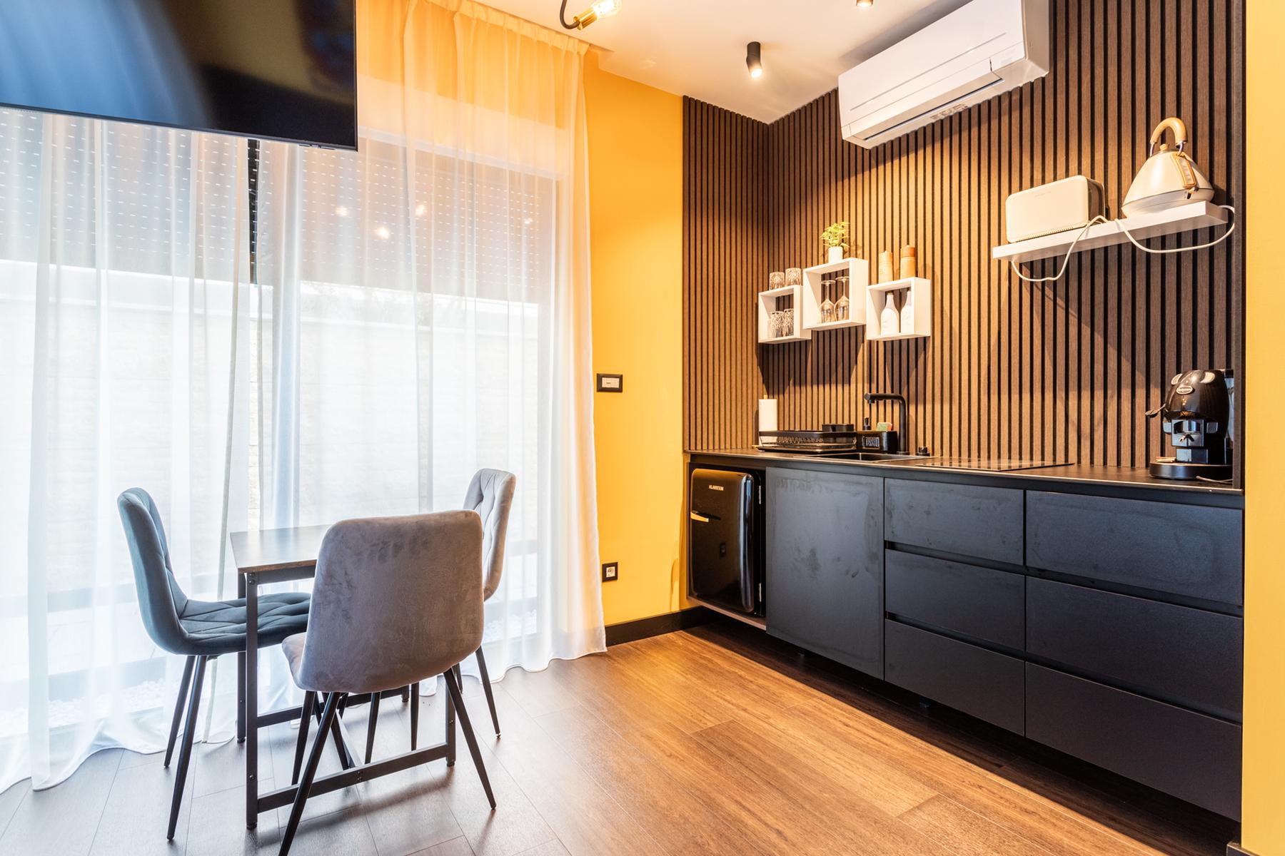 Na parterze znajduje się hol wejściowy z klatką schodową oraz pięć całkowicie wydzielonych jednostek mieszkalnych, z których cztery to studio z aneksem kuchennym i jednym pokojem. Pierwsze piętro oferuje komfortowy apartament z dwoma sypialniami o powierzchni 80 m². Cała nieruchomość wyróżnia się wysokim standardem wykończenia oraz stylowym wystrojem. Basen usytuowany na terenie posesji stanowi idealne miejsce do relaksu w letnie dni.