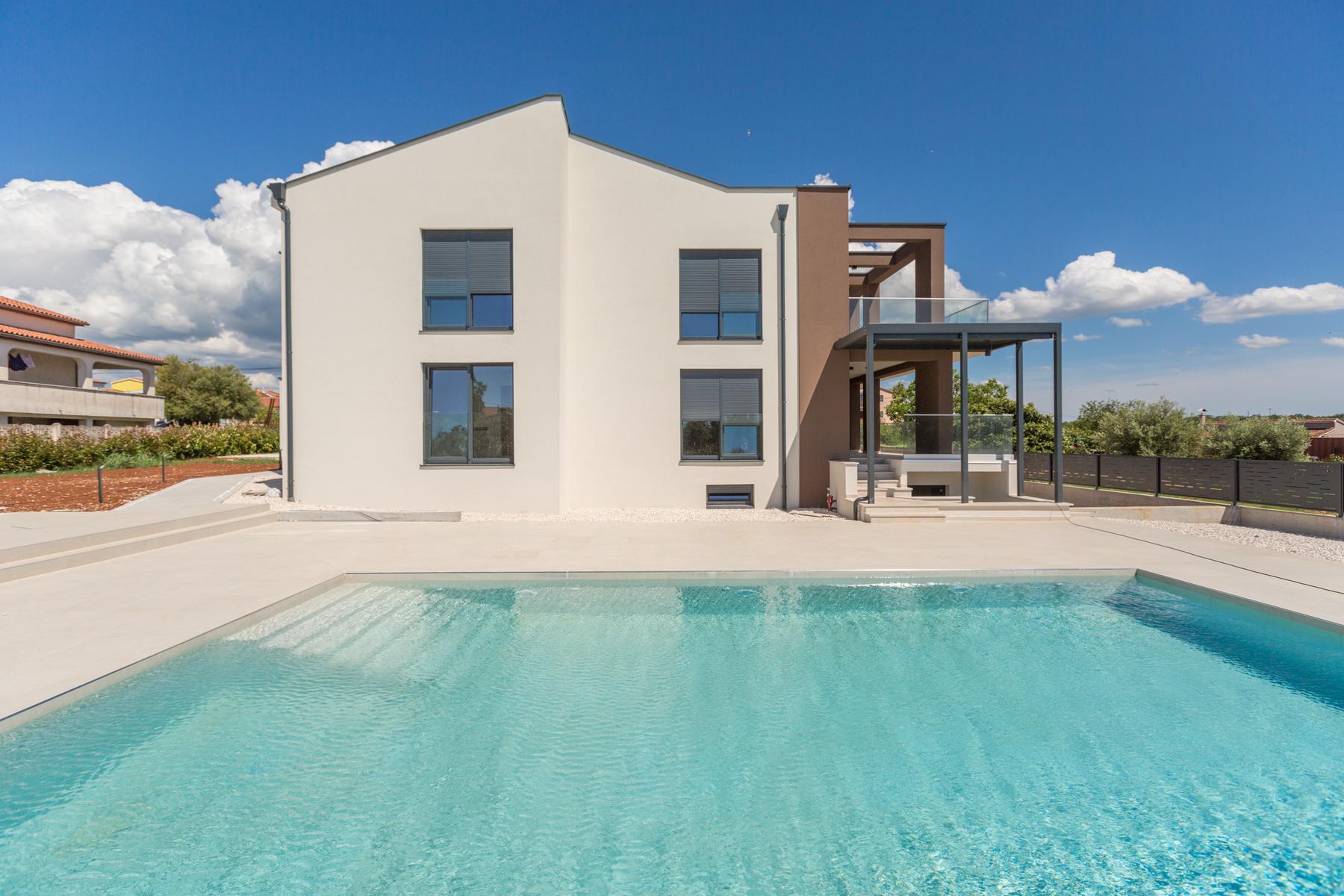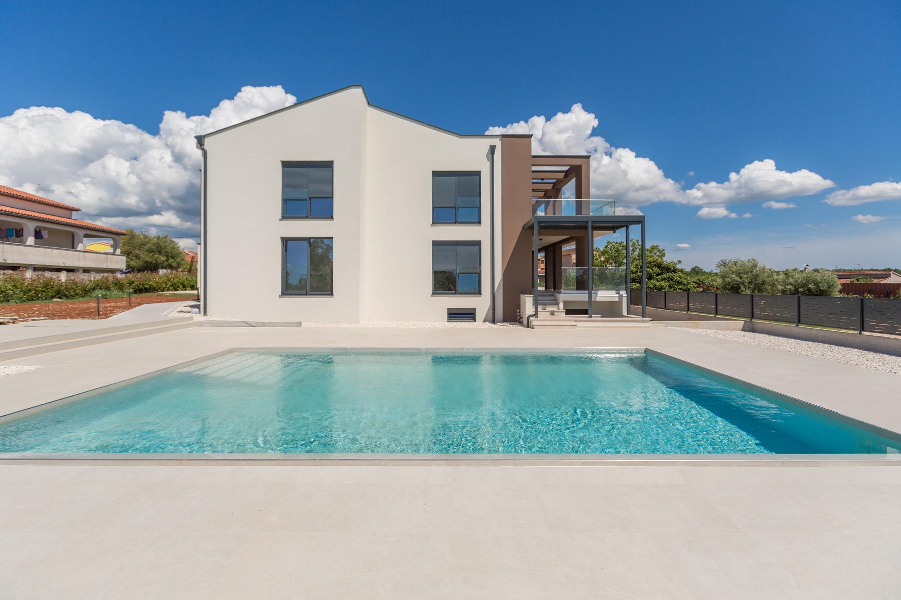 Pomieszczenia zaprojektowano z myślą o najwyższym standardzie życia, łącząc elegancję i komfort. Ta przestronna nieruchomość posiada trzy kondygnacje oraz budynek pomocniczy, co daje wiele możliwości aranżacyjnych. Parter domu mieści przytulne mieszkanie z pokojem dziennym, kuchnią i jadalnią, które wychodzą na taras, sprzyjając relaksowi na świeżym powietrzu. Na piętrze i w piwnicy zaplanowano przestrzenie prywatne i rekreacyjne, które zaspokoją potrzeby całej rodziny. Doskonałe usytuowanie niedaleko centrum Porec umożliwia łatwy dostęp do jego wszystkich atrakcji, zachowując spokój i prywatność posesji.