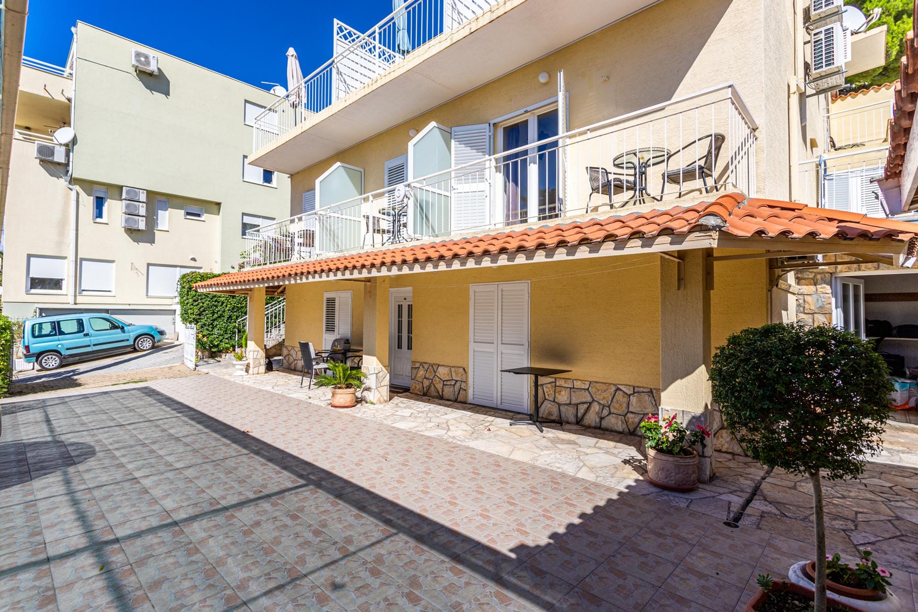 W Baška Voda dostępna jest wyjątkowa nieruchomość idealna dla osób ceniących komfort i wygodę. Dom o powierzchni 650 m² jest podzielony na trzy kondygnacje i zawiera dziewięć samodzielnych mieszkań. Każde z nich zostało w pełni wyposażone i umeblowane, co pozwala na bezproblemowe użytkowanie lub wynajem turystyczny.