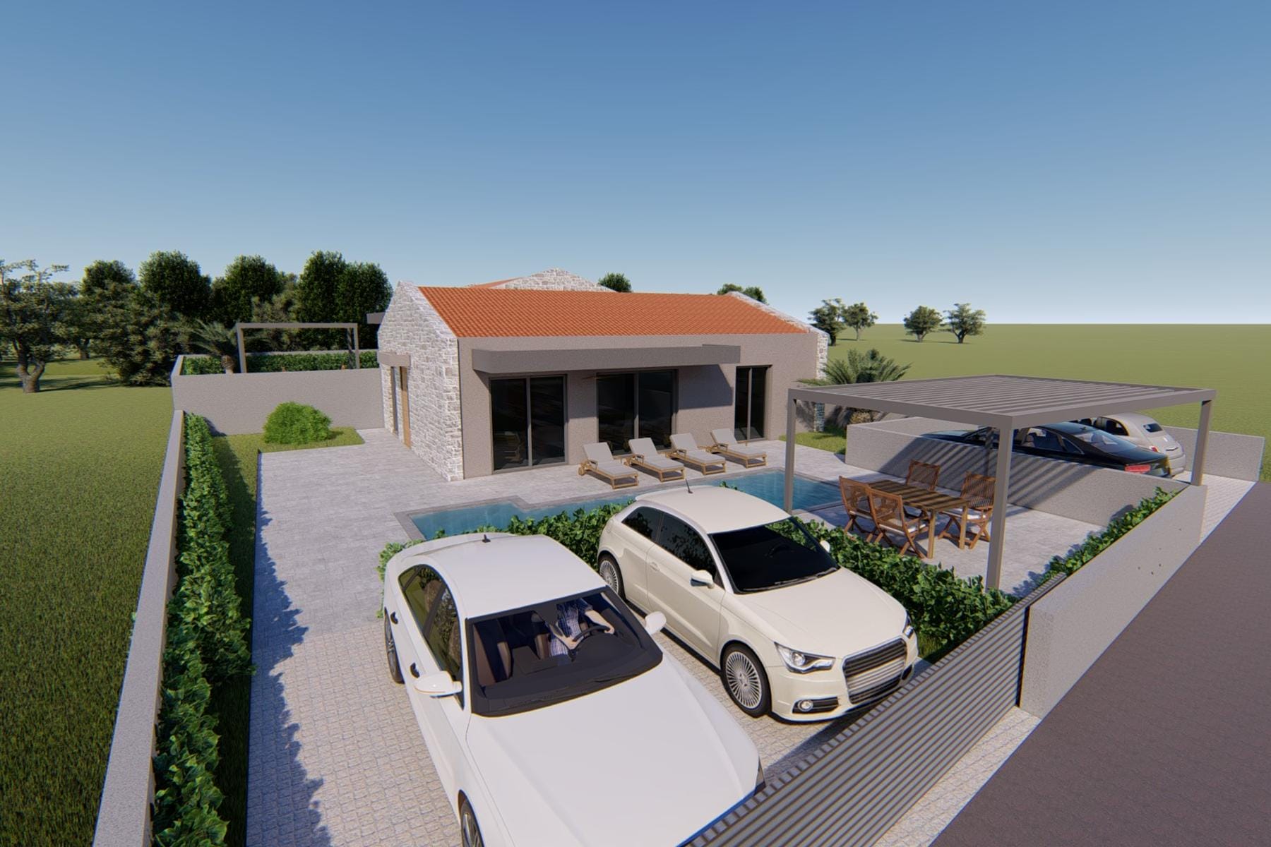 Nowoczesny, parterowy dom usytuowany w spokojnej okolicy niedaleko wybrzeża Adriatyku, który spełni oczekiwania osób ceniących ciszę i wygodę. Nieruchomość o powierzchni 90 m² zapewnia komfortową przestrzeń mieszkalną dla rodziny lub jako miejsce wypoczynku w otoczeniu natury. Umiejscowienie w pobliżu turystycznego Porecza łączy spokój z bliskością niezbędnej infrastruktury i atrakcji. Całość została zaprojektowana z myślą o współczesnych potrzebach, zapewniając przemyślany podział wnętrz oraz estetyczne wykończenie.