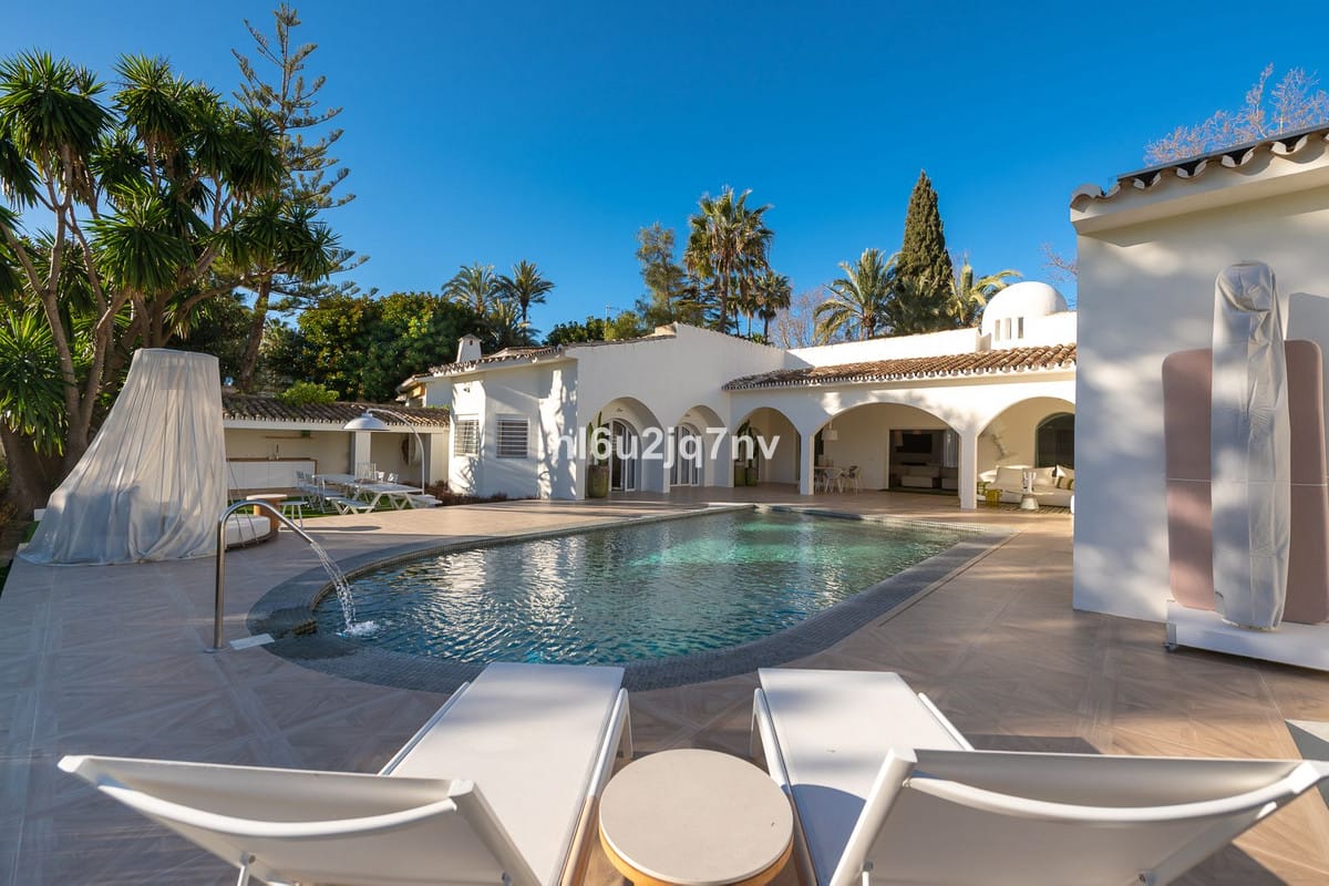 Na zewnątrz znajduje się urokliwy basen oraz przestronny taras okalający nieruchomość, stworzony na rodzinne spotkania. Dodatkowo, dom jest połączony z 1. polem golfowym Guadalmina, co czyni go idealnym miejscem dla miłośników golfa. Przestrzeń zewnętrzna została wzbogacona o w pełni wyposażoną kuchnię, co ułatwia organizację letnich przyjęć. Eleganckie umeblowanie od renomowanego projektanta wnętrz z Marbelli dodaje niepowtarzalnego stylu i klasy, a każdy element został starannie dobrany, pozostając w cenie nieruchomości.