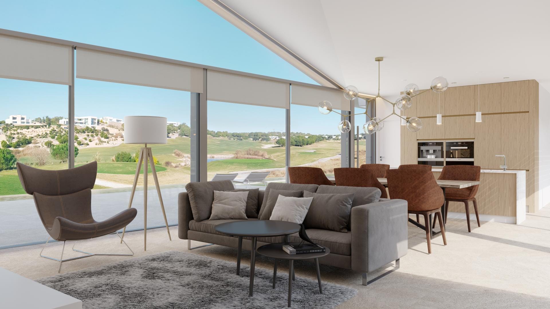 Willa w Hiszpanii to marzenie o elegancji, komforcie i niepowtarzalnych widokach na zachwycające krajobrazy. Ta nowoczesna nieruchomość z klasą spełnia wszystkie oczekiwania, oferując wyjątkowe warunki do życia. Dzięki przemyślanej architekturze, dom rozciąga się na dwóch przestronnych piętrach, gdzie dużymi oknami od podłogi do sufitu wciągnięte są malownicze widoki na pole golfowe. Jasne wnętrze, otwarta kuchnia oraz zharmonizowana jadalnia z salonem tworzą idealne miejsce do relaksu i spotkań rodzinnych.