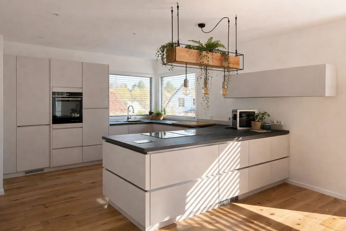 Nowoczesna kuchnia z kompletnym, wysokiej klasy sprzętem AGD
