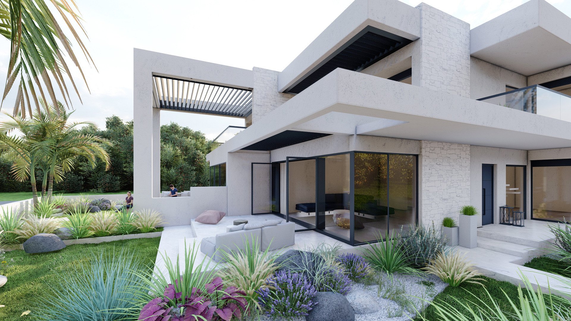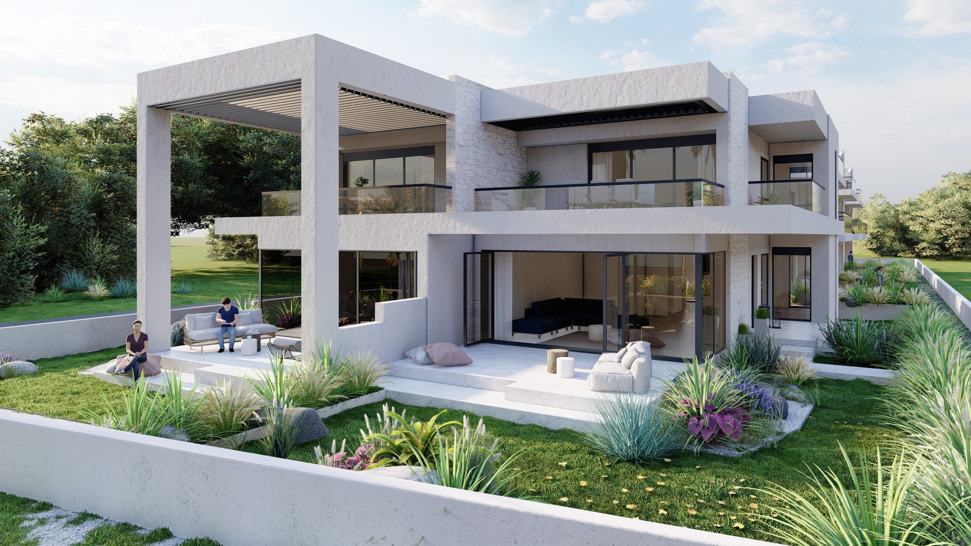Architektura harmonijnie wpisuje się w lokalny krajobraz dzięki wykorzystaniu naturalnego kamienia. Duże przeszklenia wpuszczają do wnętrz mnóstwo naturalnego światła słonecznego. Otoczenie wypełnia starannie zaprojektowana zieleń, która sprzyja relaksowi na świeżym powietrzu. Każdy detal został przemyślany, aby stworzyć bajkową atmosferę idealną na wakacyjne wyjazdy. Widok na błękitne wody Wybrzeża Ofrynio zapiera dech w piersiach każdego dnia.