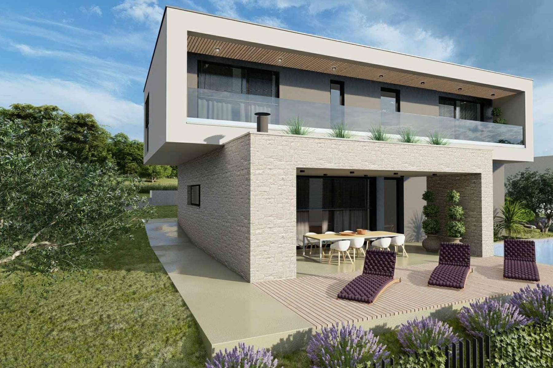 Prezentowana nieruchomość to wyjątkowa działka o powierzchni 897 m² położona w spokojnej okolicy miejscowości Marčana. Lokalizacja zapewnia piękne widoki na morze, co czyni ją idealnym miejscem do realizacji wymarzonego domu. Działka posiada ważne pozwolenie na budowę oraz gotowy projekt nowoczesnego domu z basenem, co znacznie przyspiesza rozpoczęcie inwestycji.