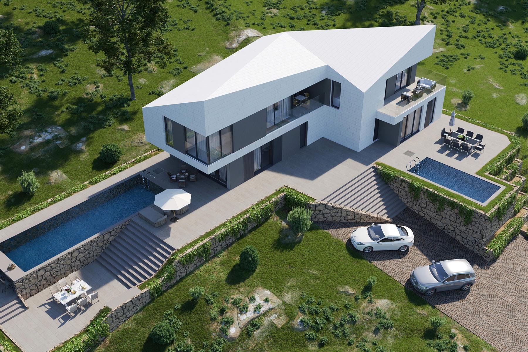 Oferta dotyczy atrakcyjnej działki budowlanej usytuowanej na obszarze Konavle w Chorwacji. Nieruchomość jest gotowa pod inwestycję mieszkaniową, posiadając aktualne pozwolenie na budowę. Plan zakłada wzniesienie półbliźniaka, który składa się z dwóch odrębnych, dwupiętrowych segmentów mieszkalnych. Łączna powierzchnia netto zaprojektowanego budynku to 320 m2. Dodatkowym atutem są dwa budynki pomocnicze – baseny z całym niezbędnym wyposażeniem rekreacyjnym, które podnoszą standard inwestycji. Taka przestrzeń stwarza idealne warunki do komfortowego życia, łącząc nowoczesne rozwiązania z funkcjonalnością.